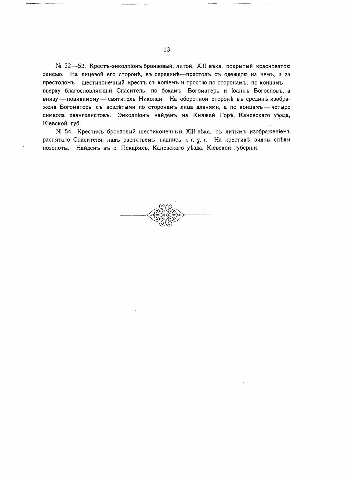54. Крестикъ бронзовый шестиконечный, Xlll вька, съ литымъ