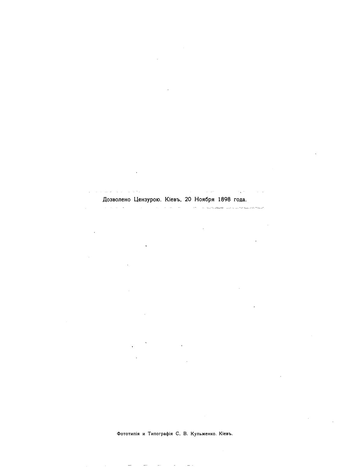 Дозволено Цензурою. Юевъ, 20 Ноября 1898 года.