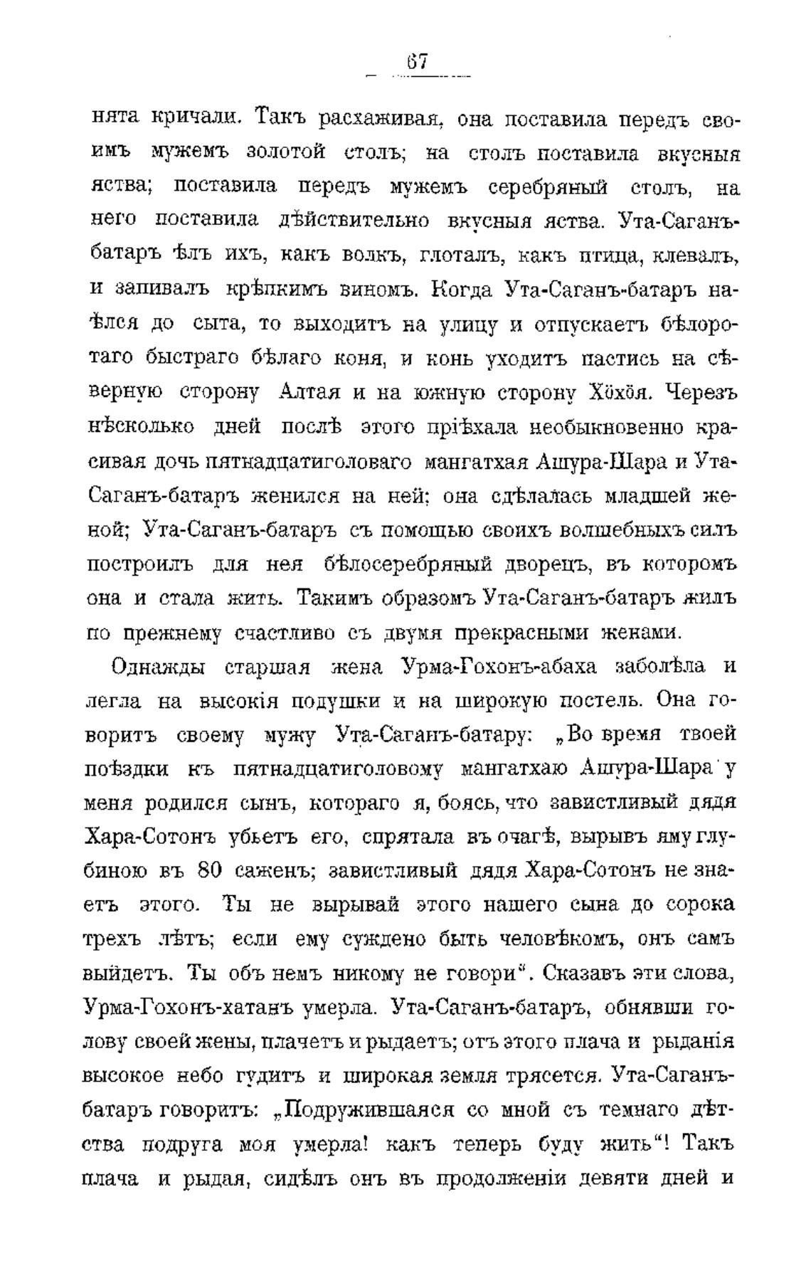 она и стала жить. Такимъ образомъ Ута•Саганъ-батаръ жиль