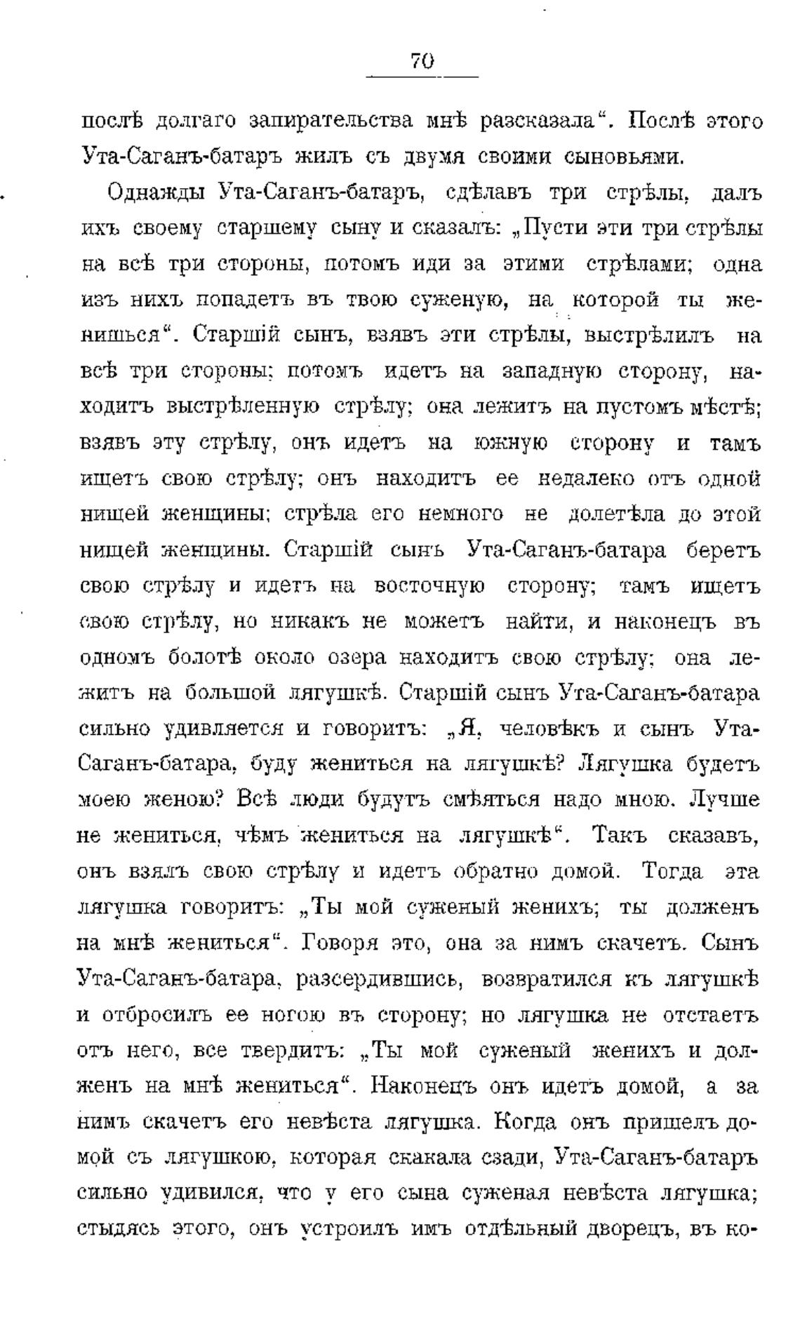 Однажды Ута-Саганъ-батаръ, сд±лавъ три стр%лы, даль
