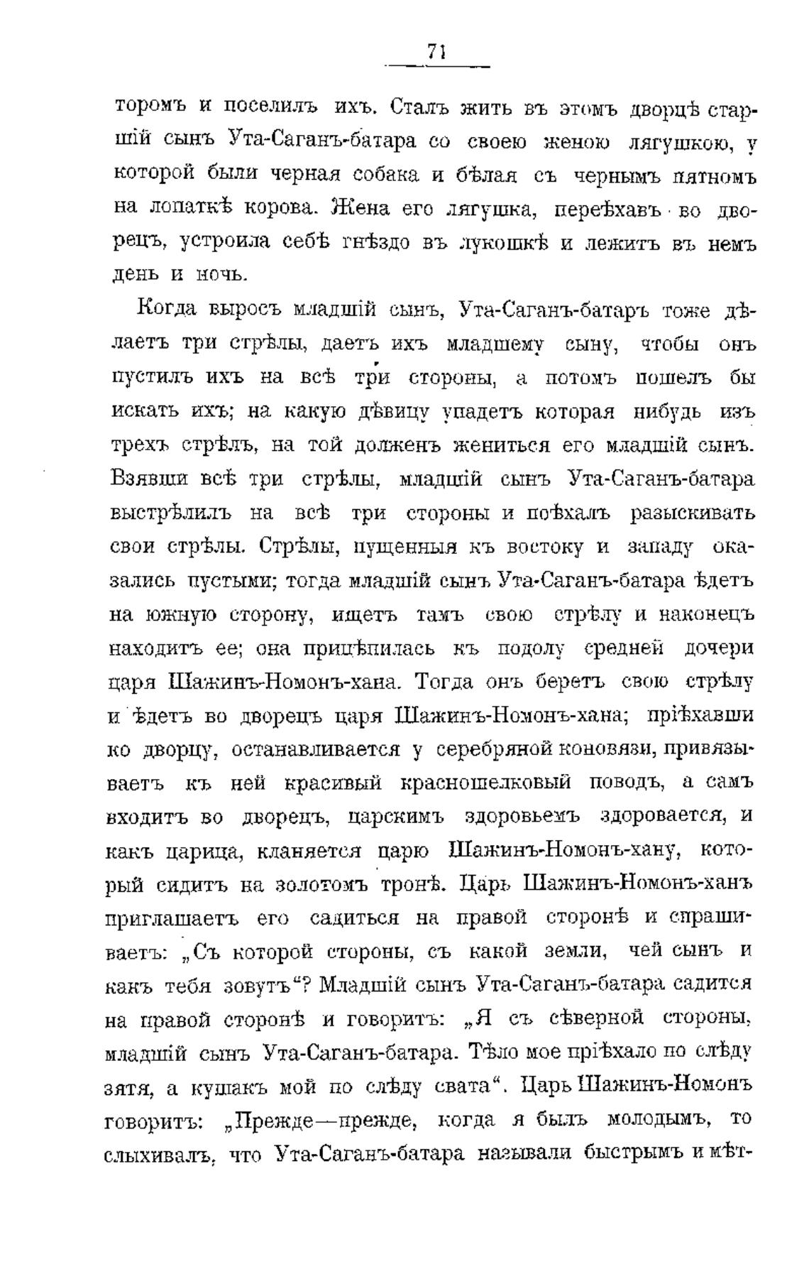 Взявши всгв три стр±лы, сынъ Ута-Саганъ-батара