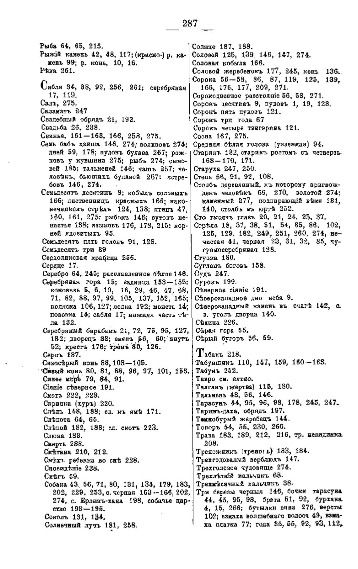 Сень бабь хакша 146. 274; волхвовъ 274;