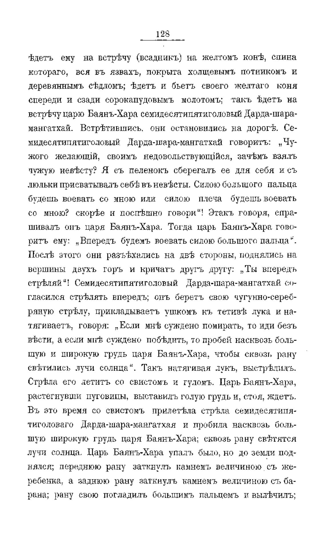 шую широкую грудь царя Баянъ-Хара; сквозь рану св±тятся