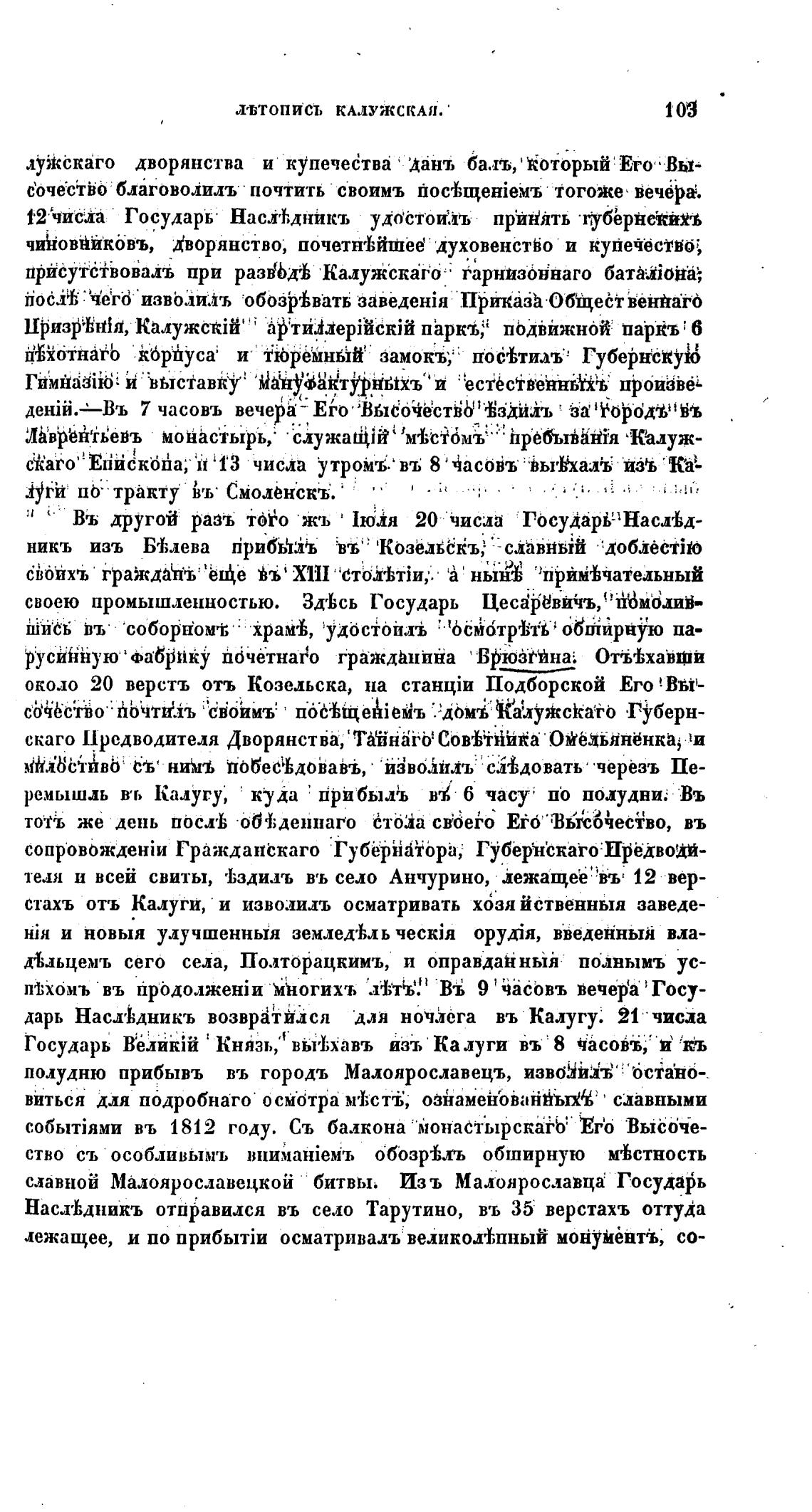полудню прибывъ въ городь Малоярославецъ, 6ciaho-