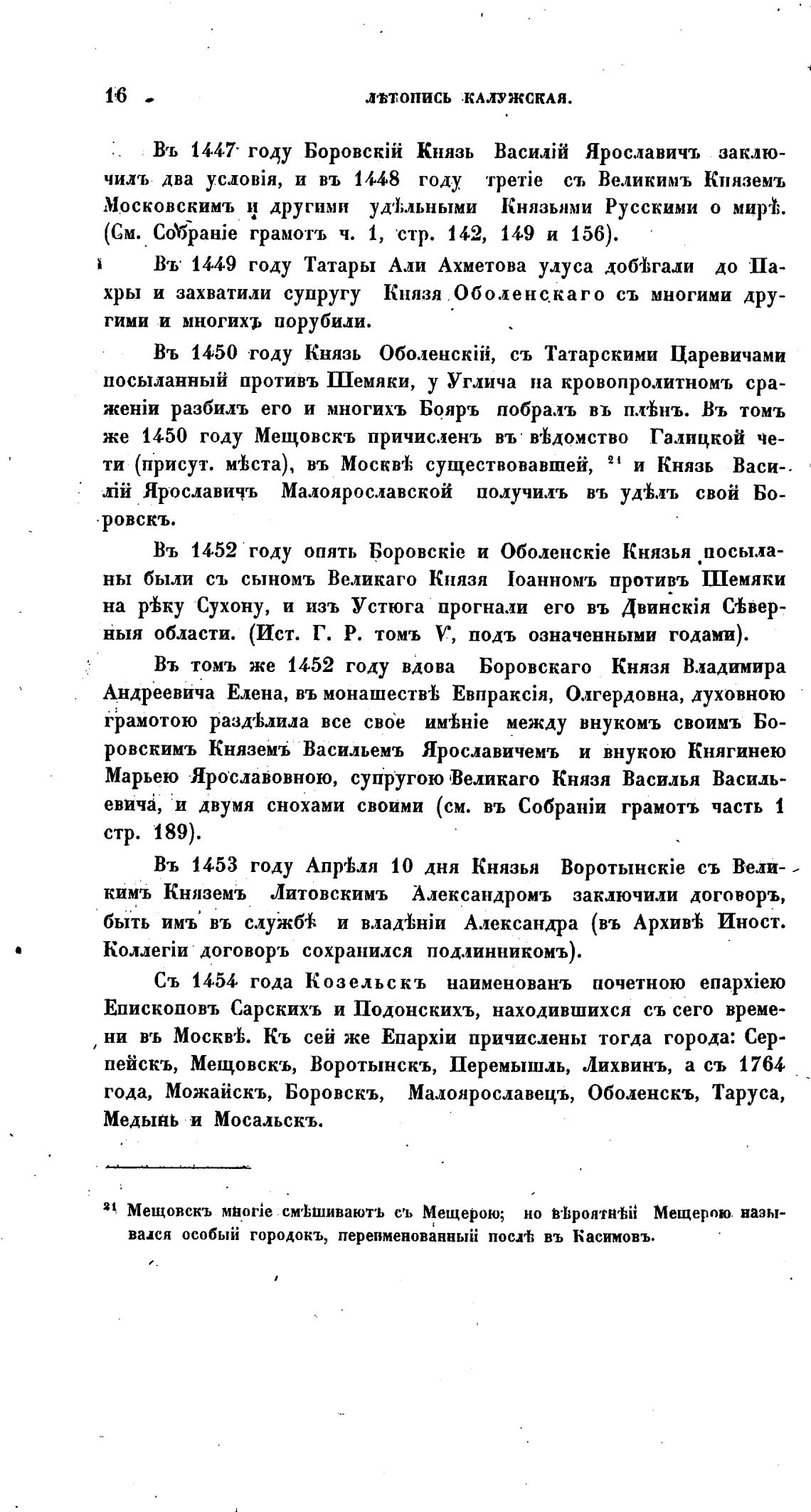 Въ 1447- году БоровскЈй Князь Ярославичъ заклю-