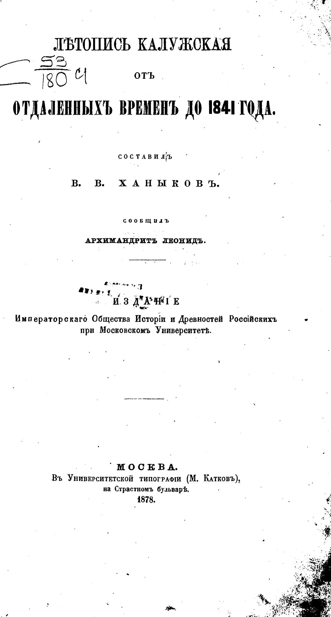 Въ УНИВЕРСИТЕТСКОЙ ТИПОГРАФШ (М. КАТКОВЪ),