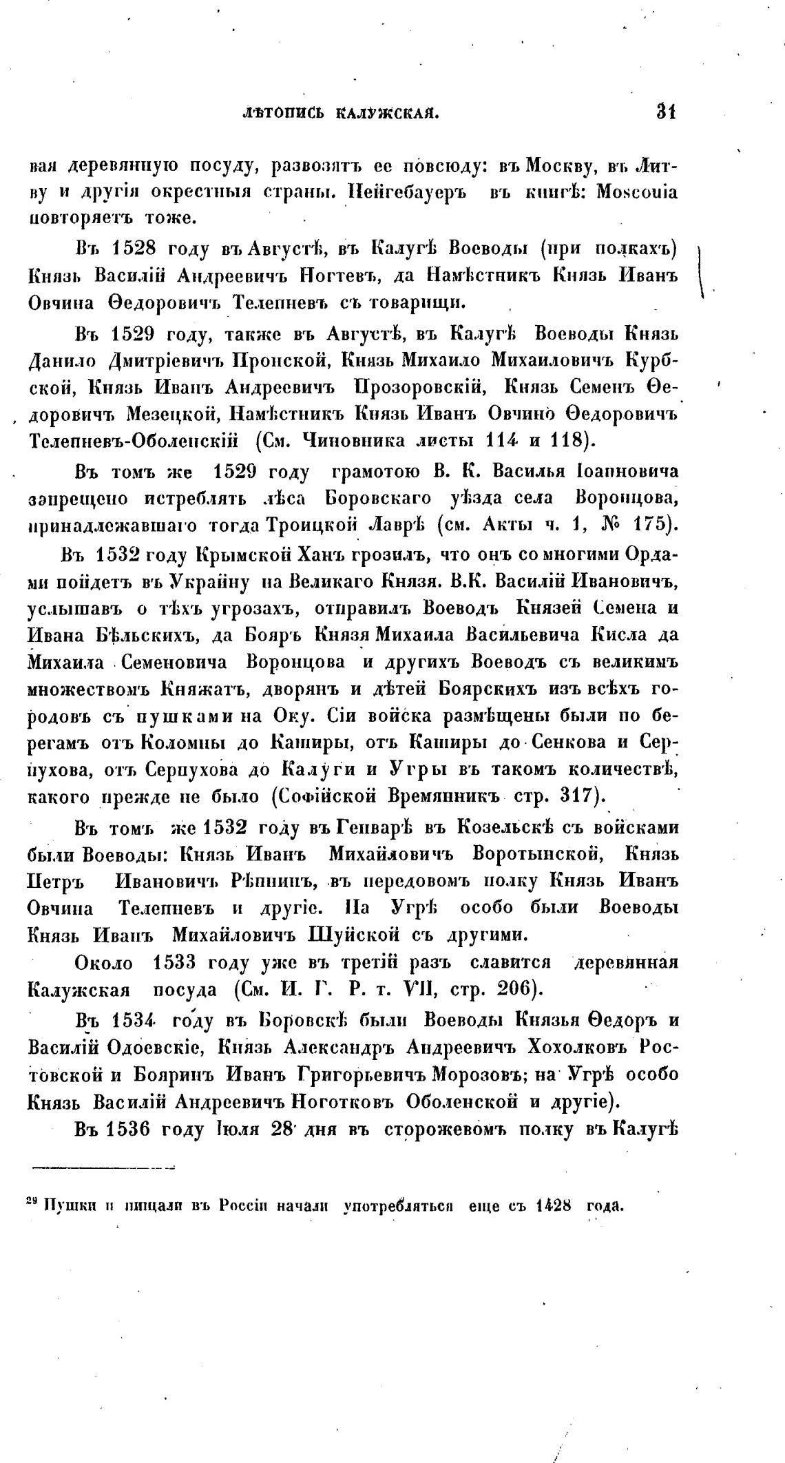 Въ 1529 году, также въ Августы въ Калуг•1; Воеводы Князь