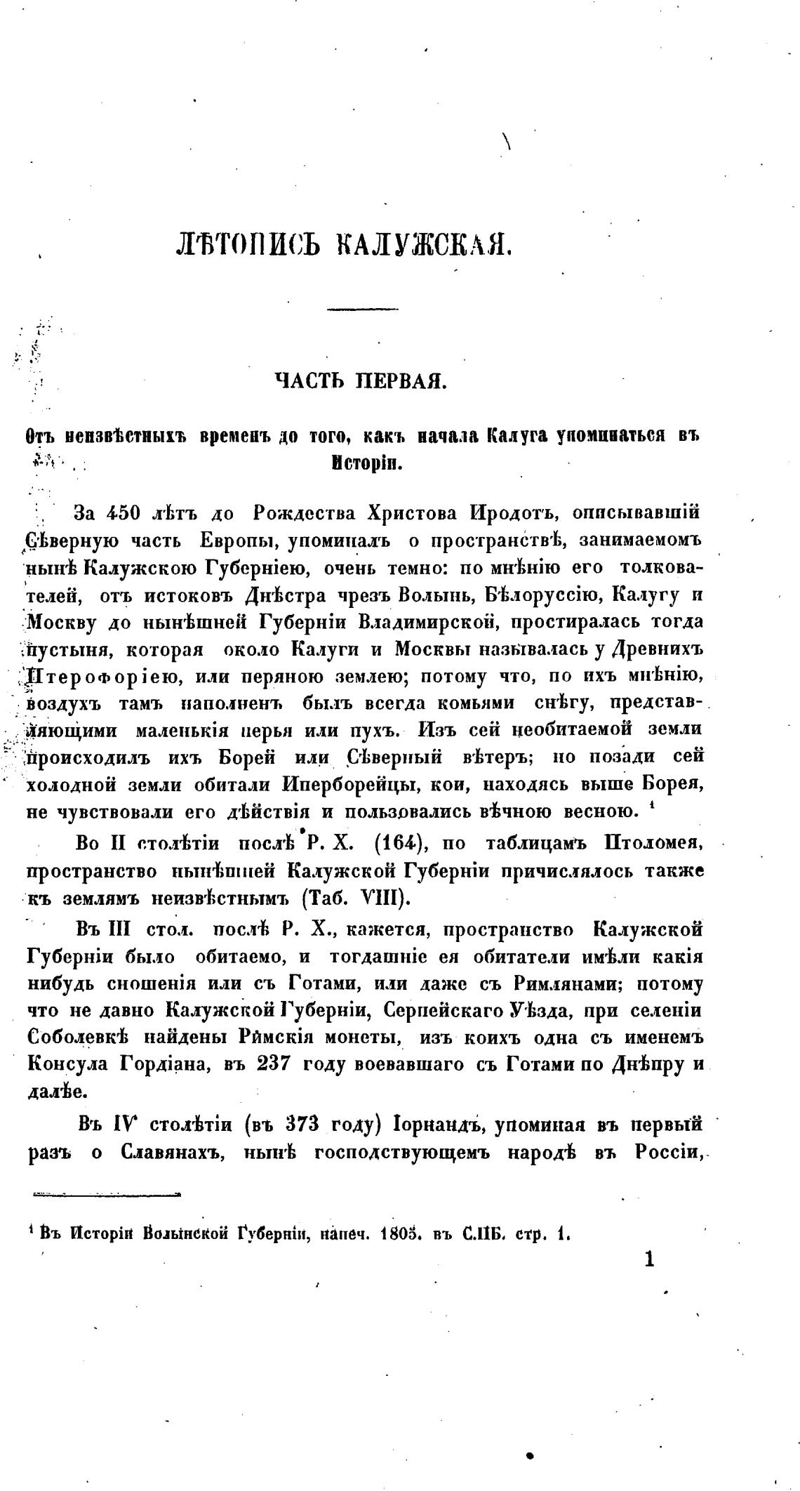 Въ ИсторП1 Воль±некой Губерн{и, напеч. 1806. въ С.ПБ. стр. 1.