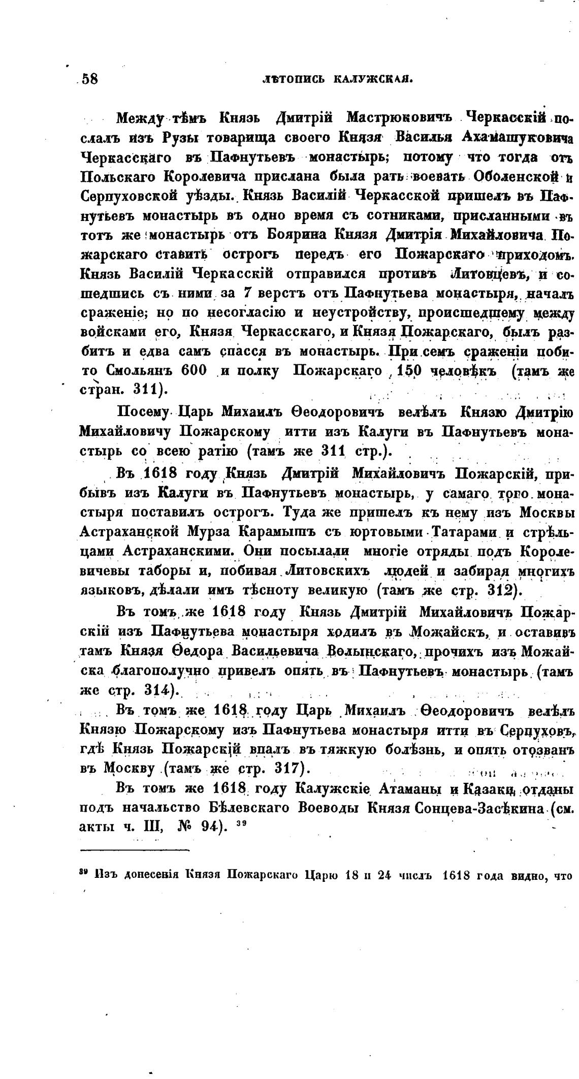 39 Изъ Князя Пожарскаго Царю 18 и 24 чисть 1618 года видно, что