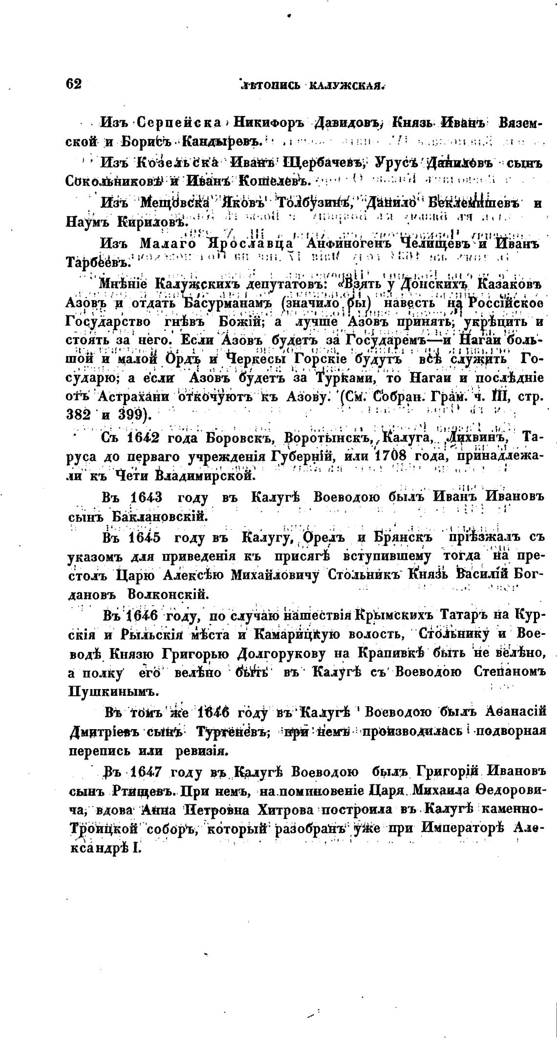 Въ 1643 году въ Калугг\ Воеводою был{ Ивань Ивановъ