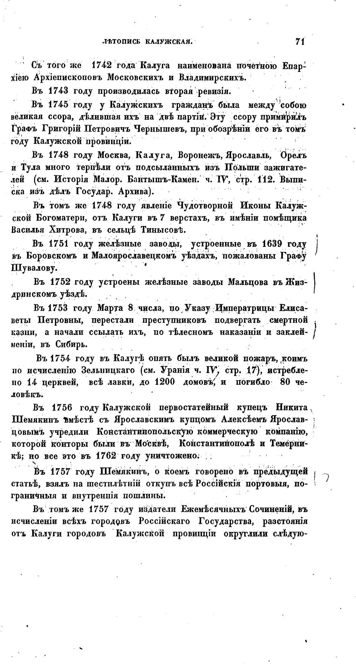 Въ 1754 году въ Калуй опять быль ведикой пожарь, ,коимъ