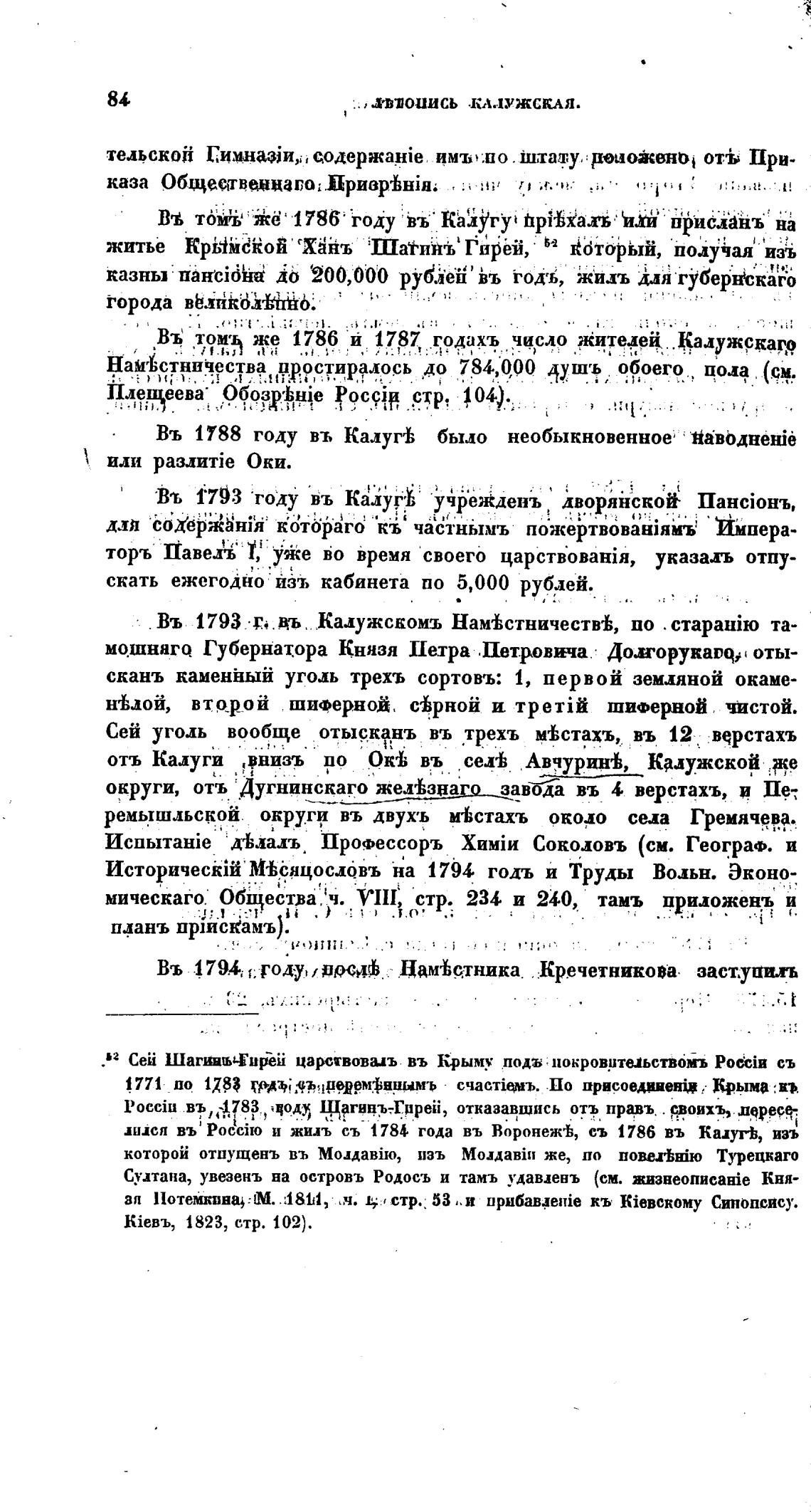 тЬ*' 1786' •году въ• Ка«дугу' hpika.r; h.th в)ис.мнъ на