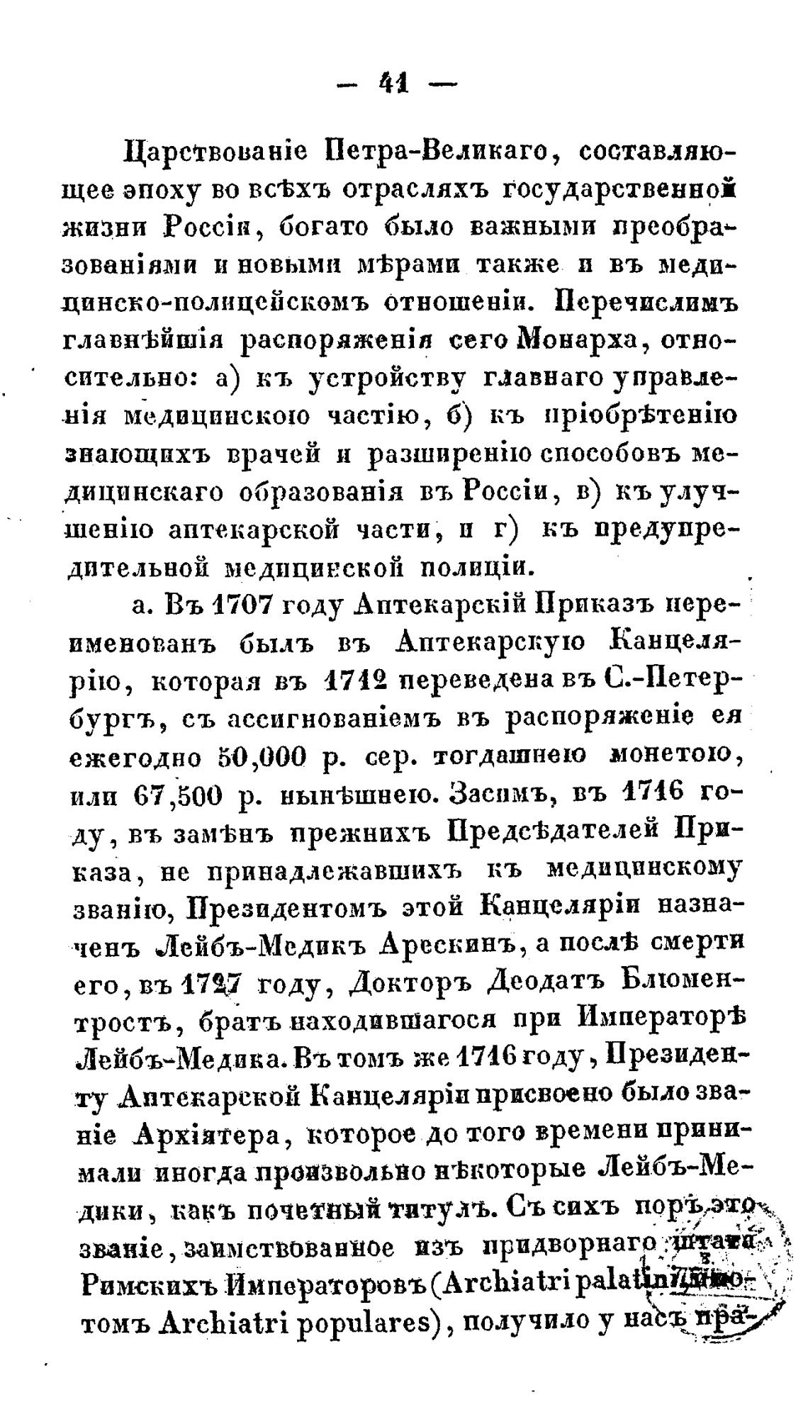 именованъ быль въ Аптекарскую Канцеля-