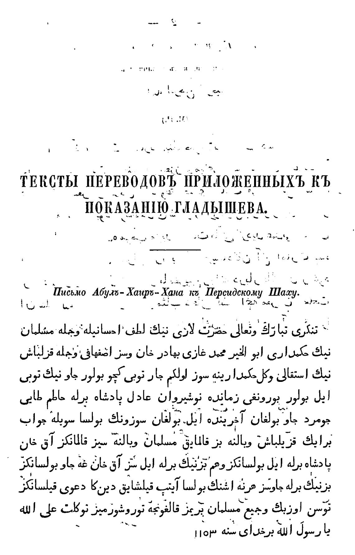 Пи;ьто Абулб- Хаирб-Хана Персидскому Шату.
