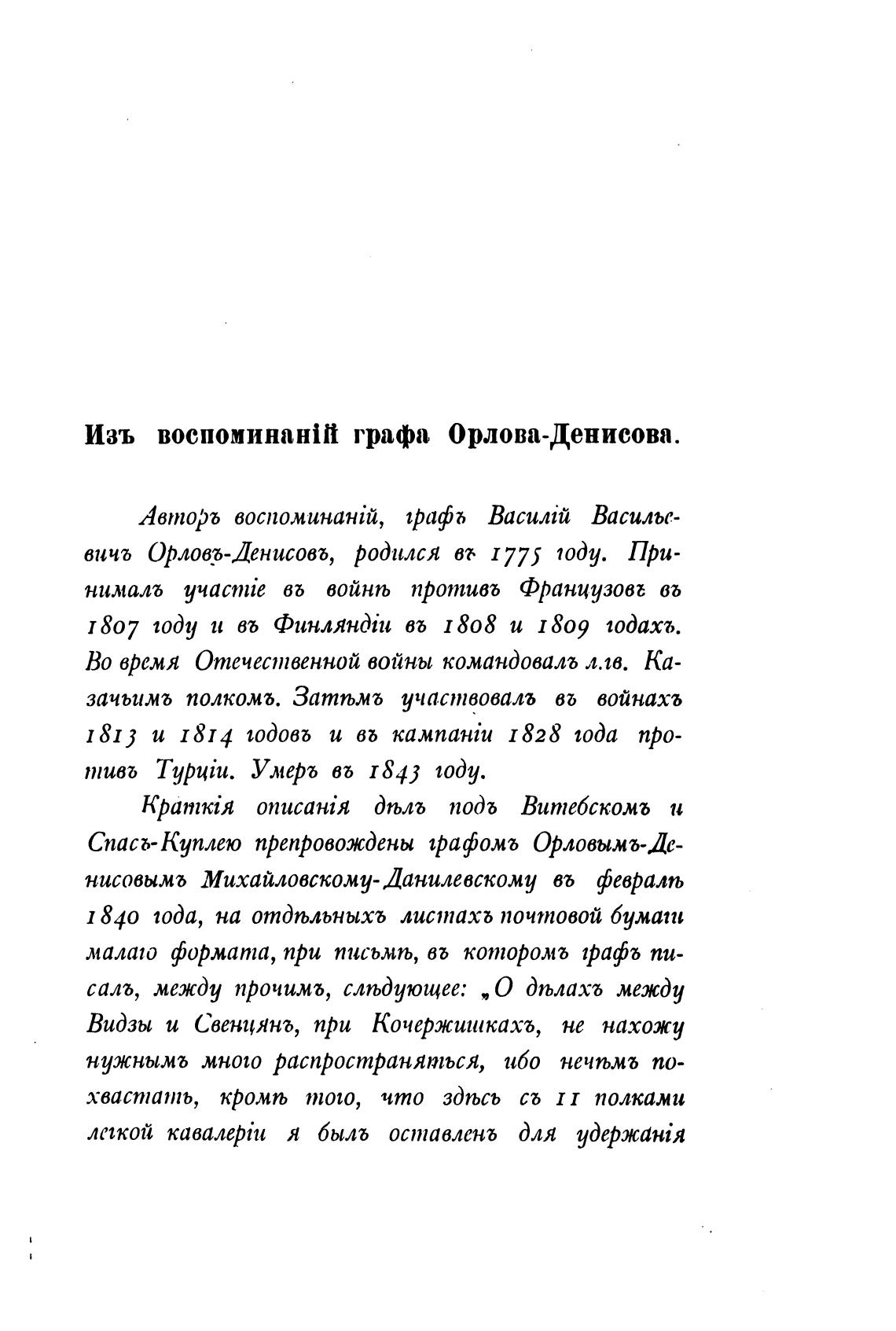Изъ воспоминанТ графа Орлова-Денисова.