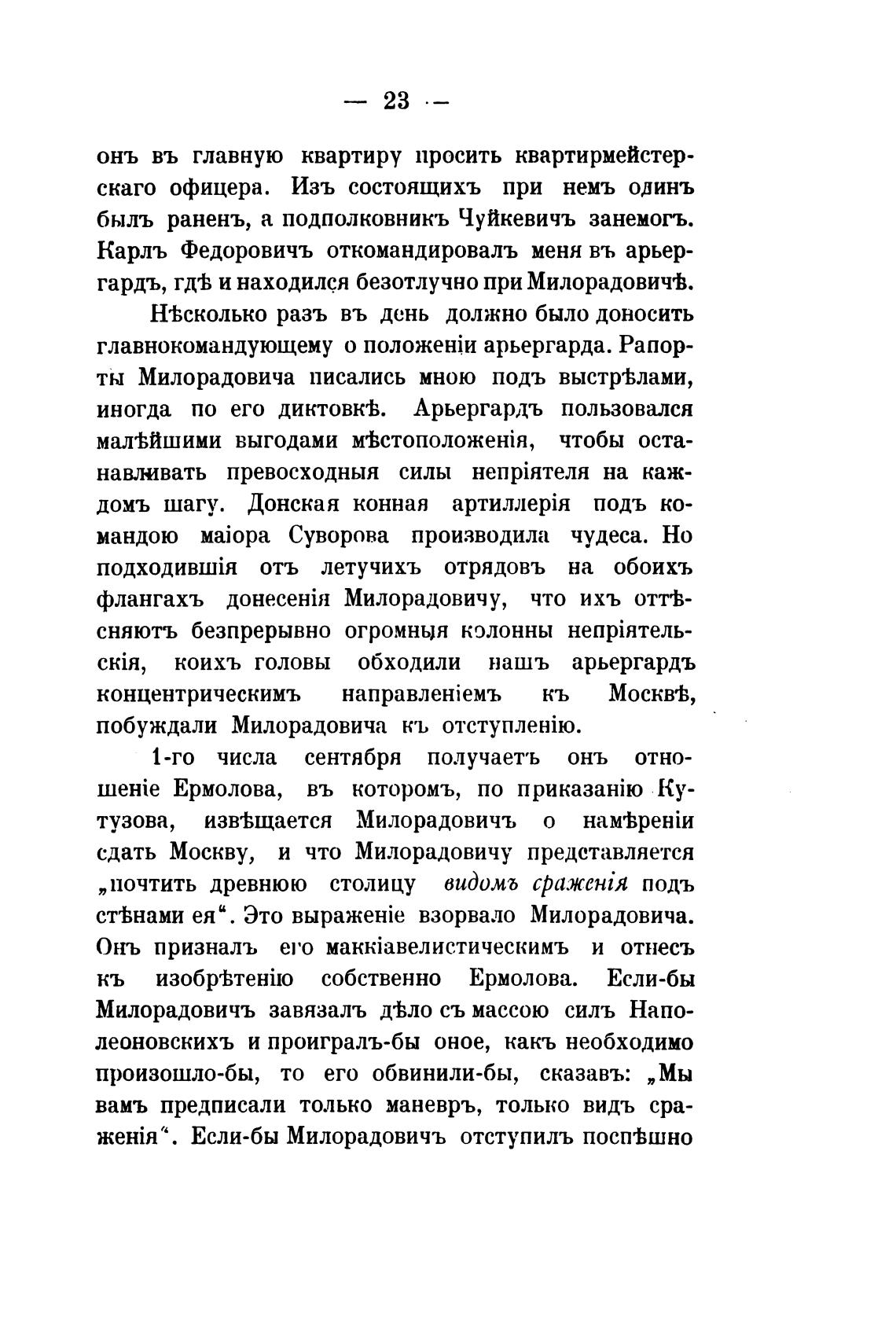 ты Милорадовича писались мною подъ выстр•Ьлами,