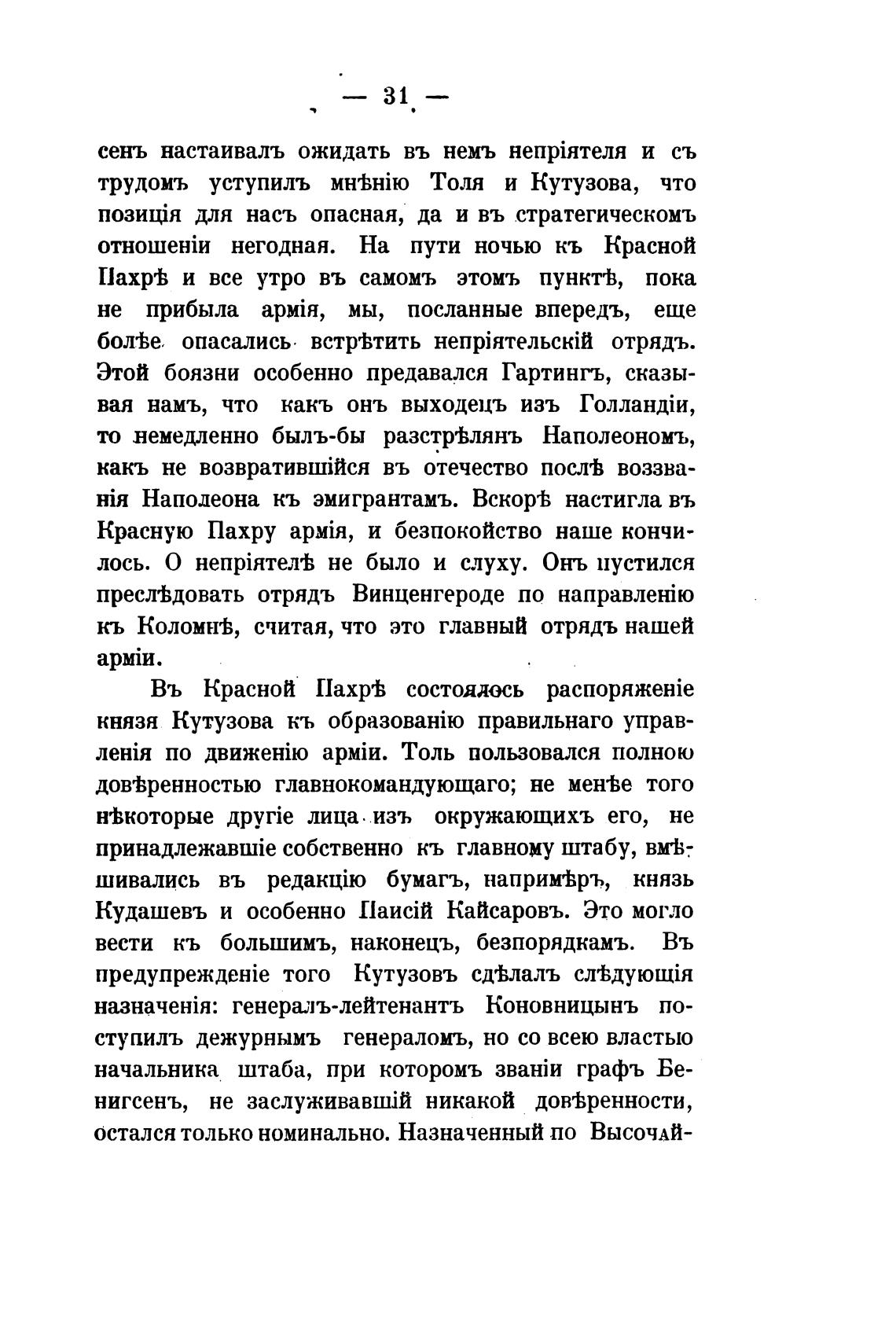 трудомъ уступилъ Толя и Кутузова, что
