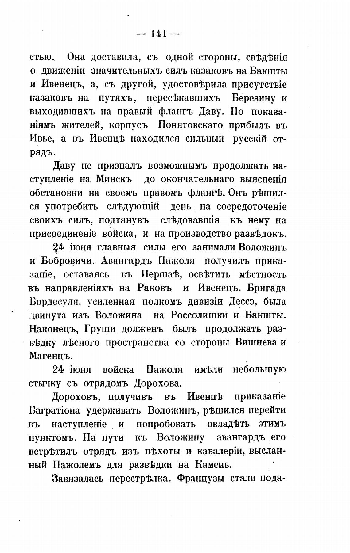 Даву не призналъ возможнымъ продолжать на: