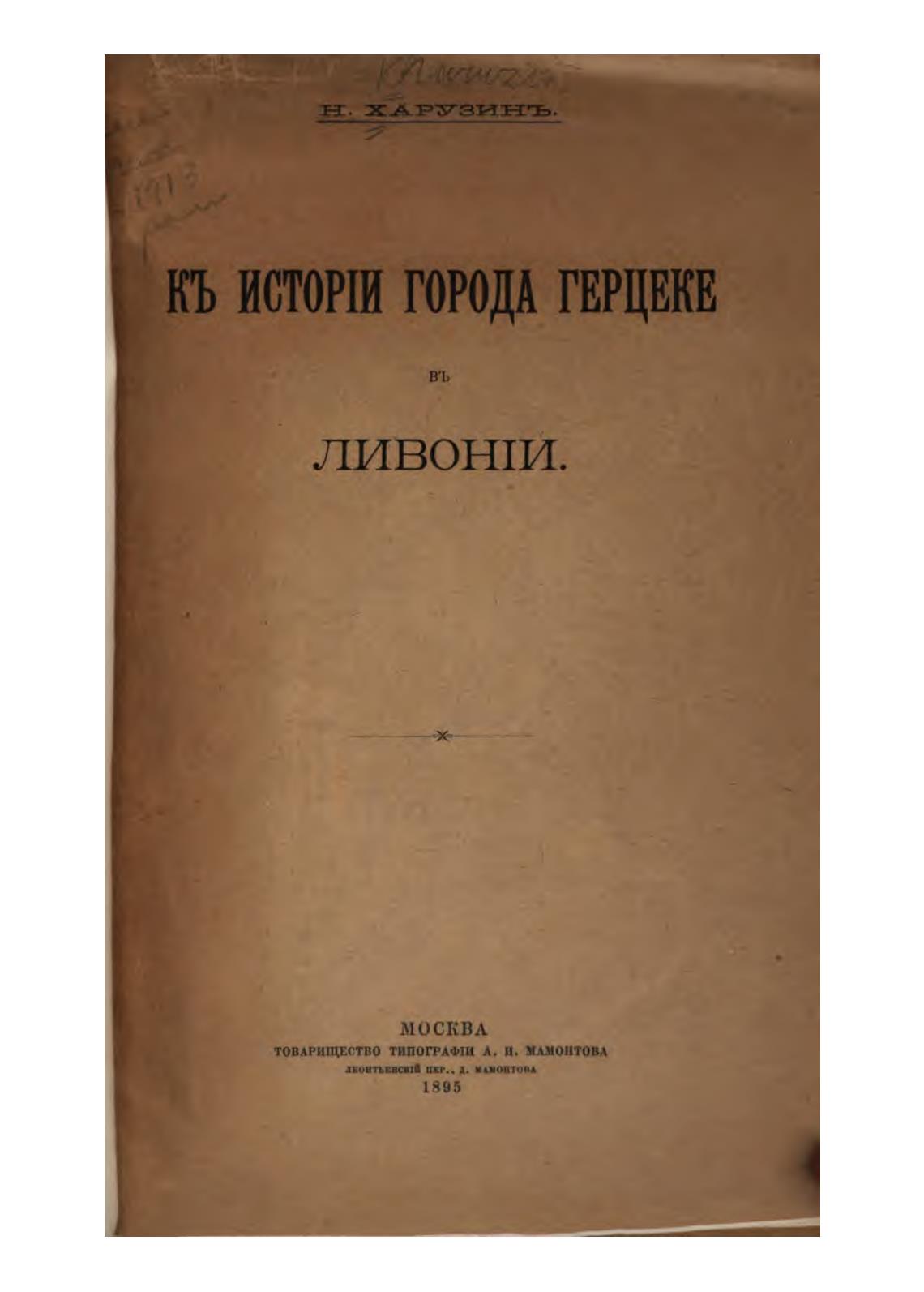 К истории города Герцеке в Ливонии. - Харузин Николай