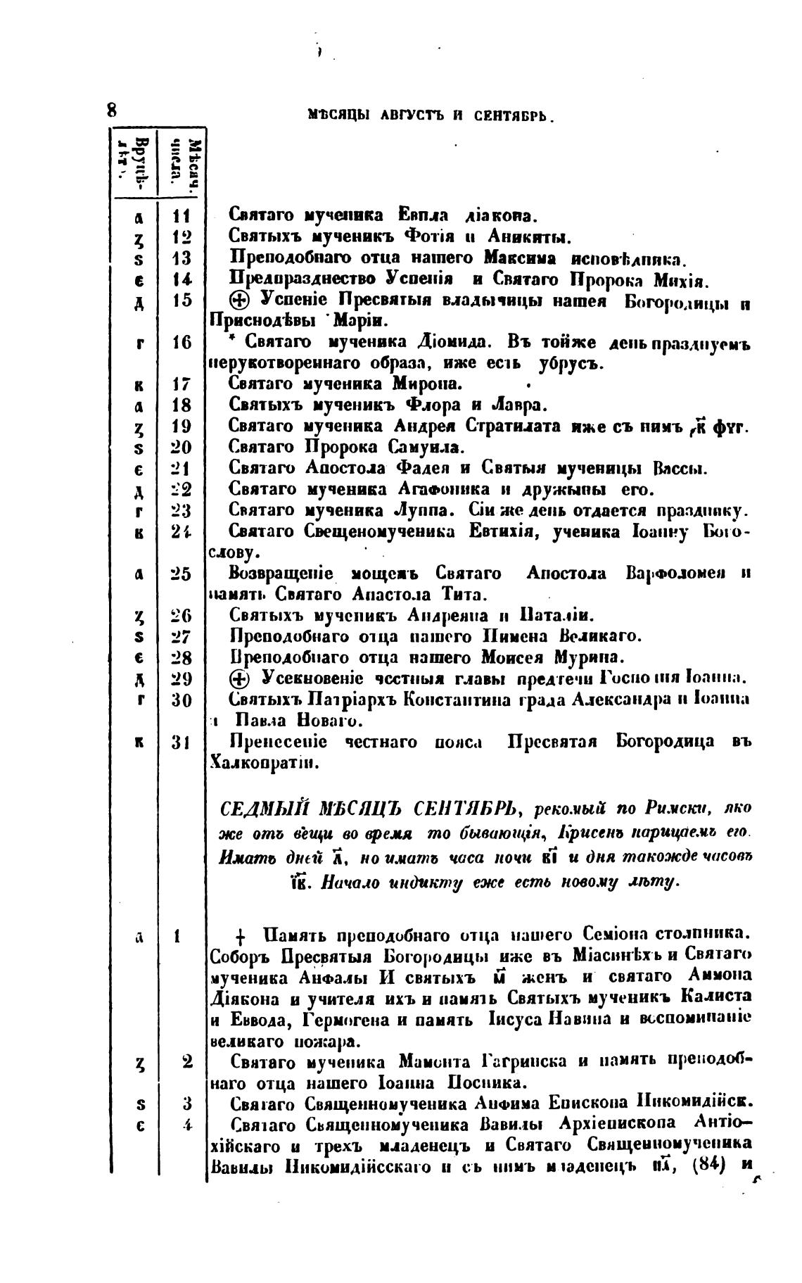 СЕдмый мьсяцъ СЕНТЯБРЬ, реко.иый по Римски, яко
