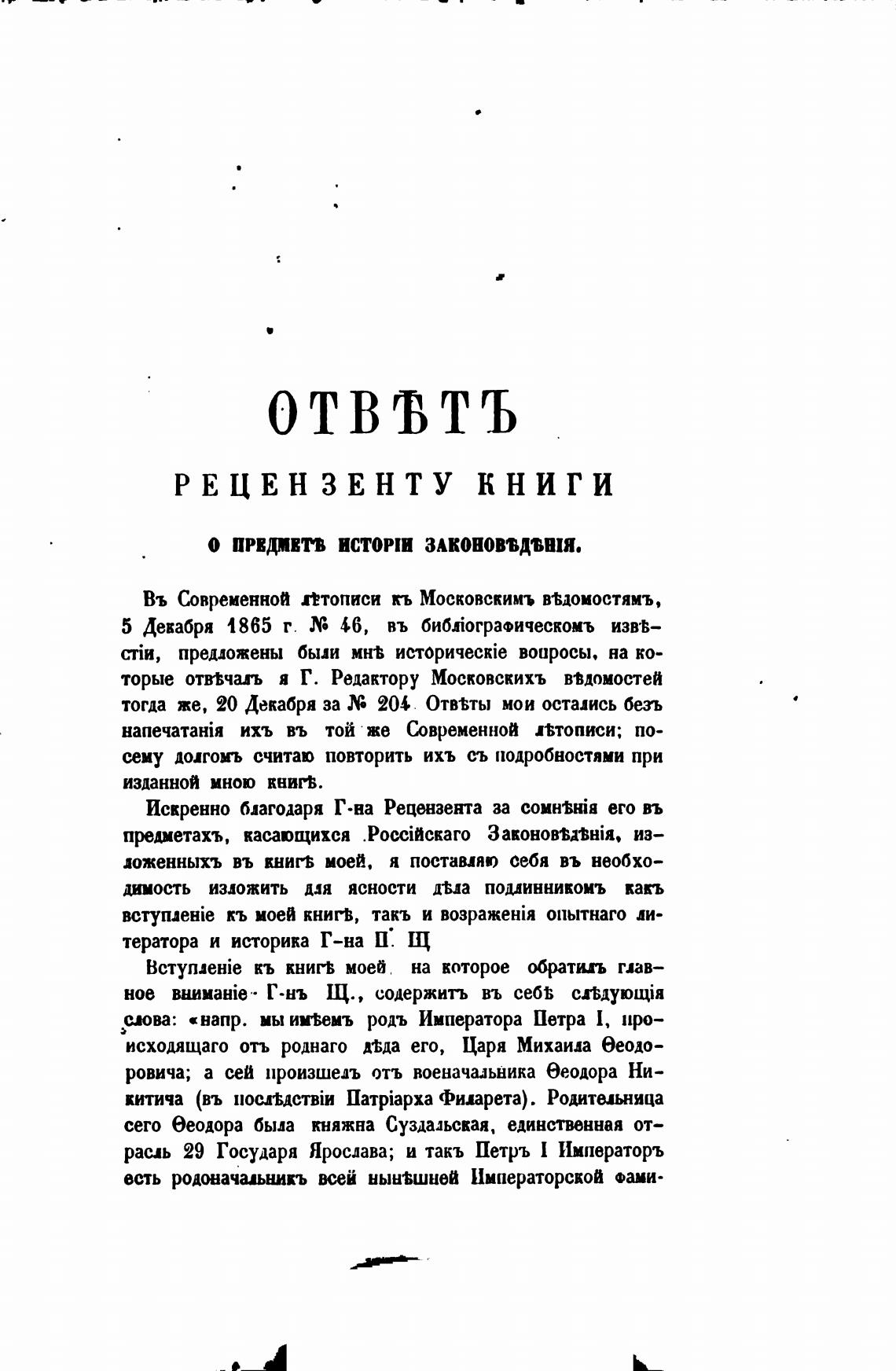 торые отв•вчал я Г. Редактору Московскихъ ввдомостеИ