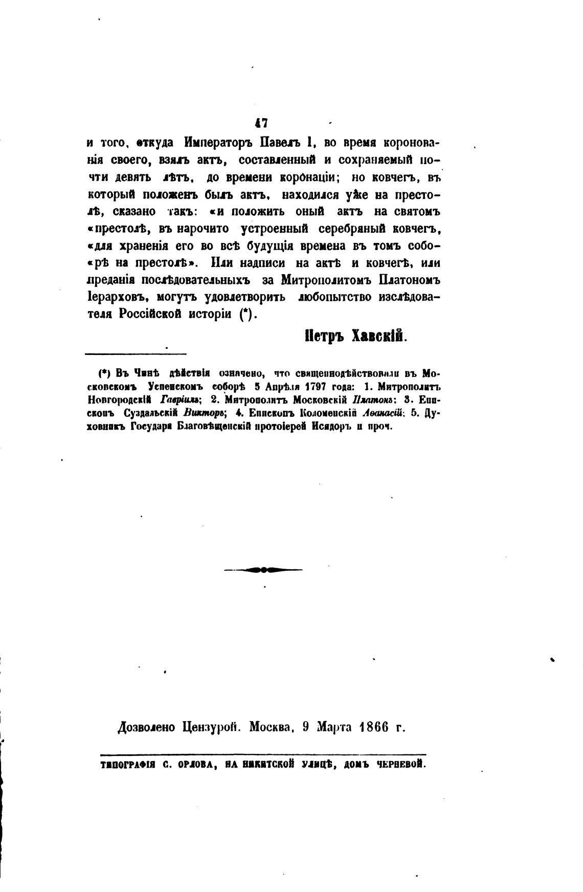 Дозволено Цензуро[ђ. Москва. 9 Марта 1866 г.