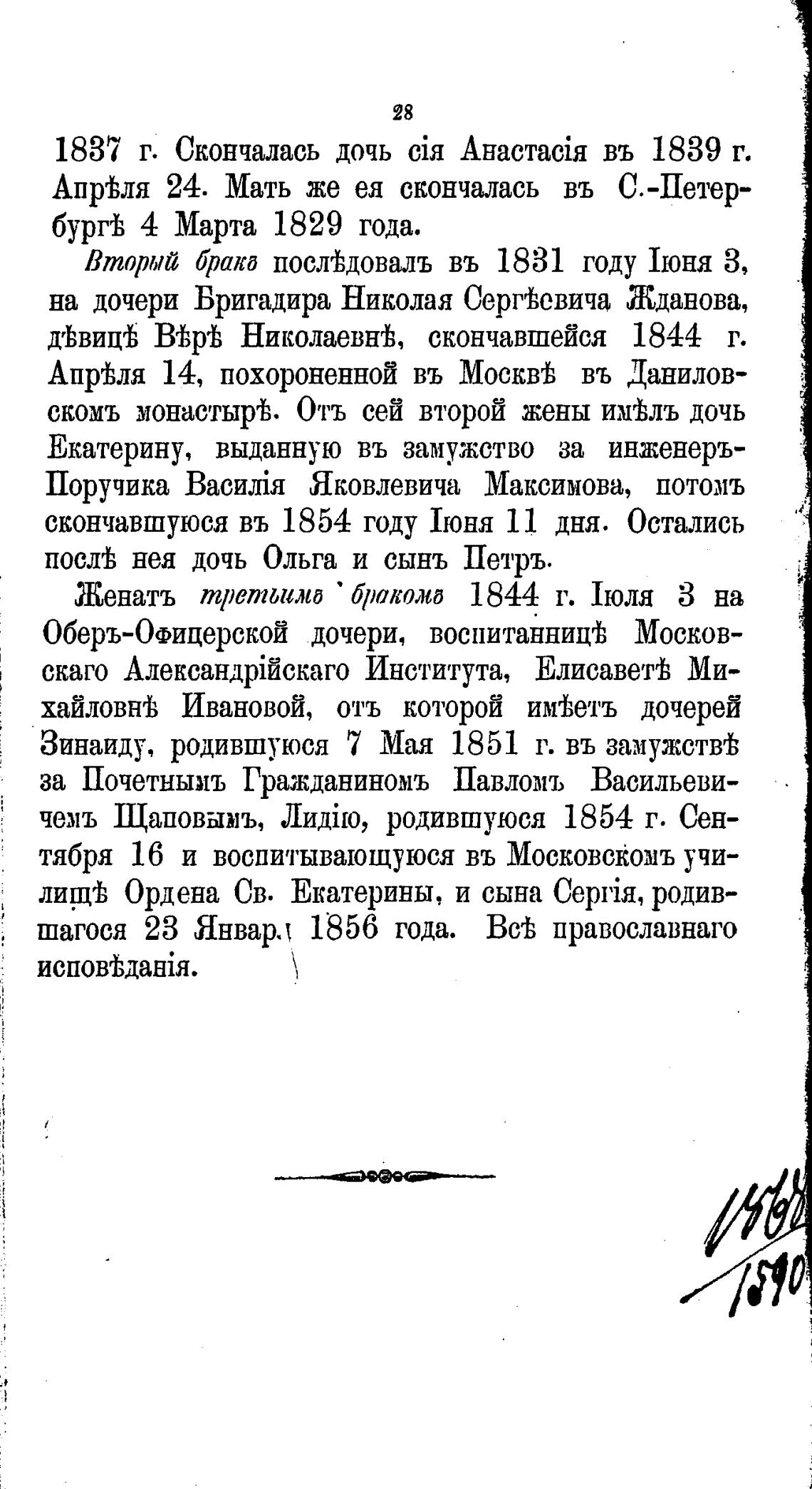 1837 г. Скончалась дочь въ 1839 г.