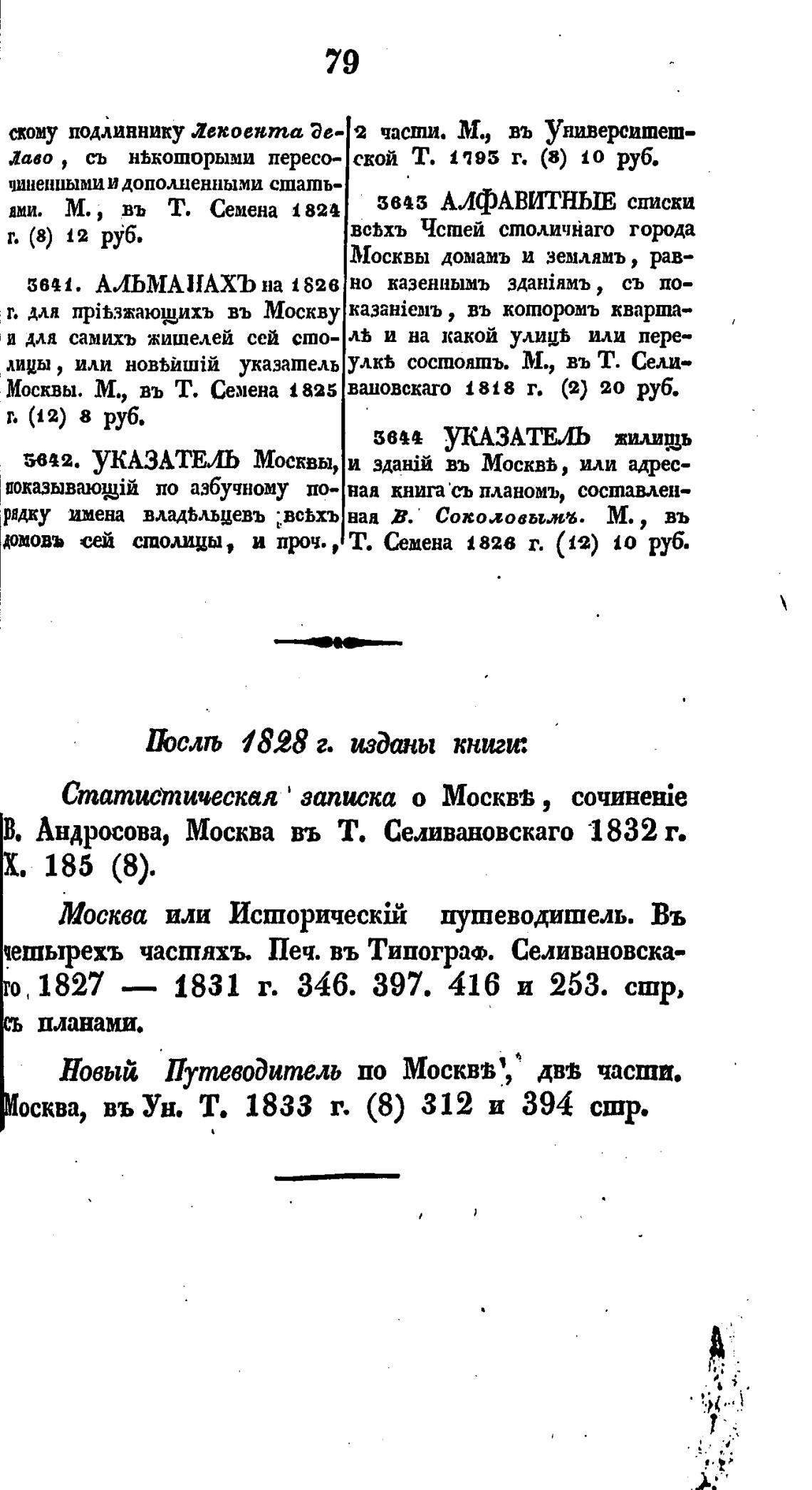 Москвы. М., въ Т. Семена 1825 ваповскато 1818 г, (2) 20 руб.