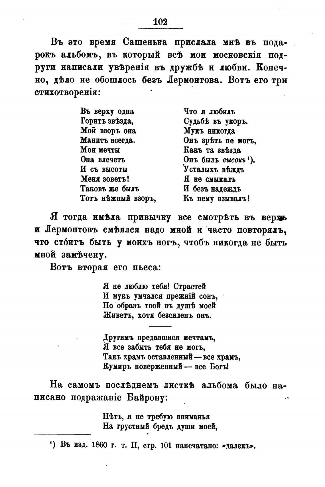 но, Одо не обошлось безъ Лермонтова. Вотъ его три