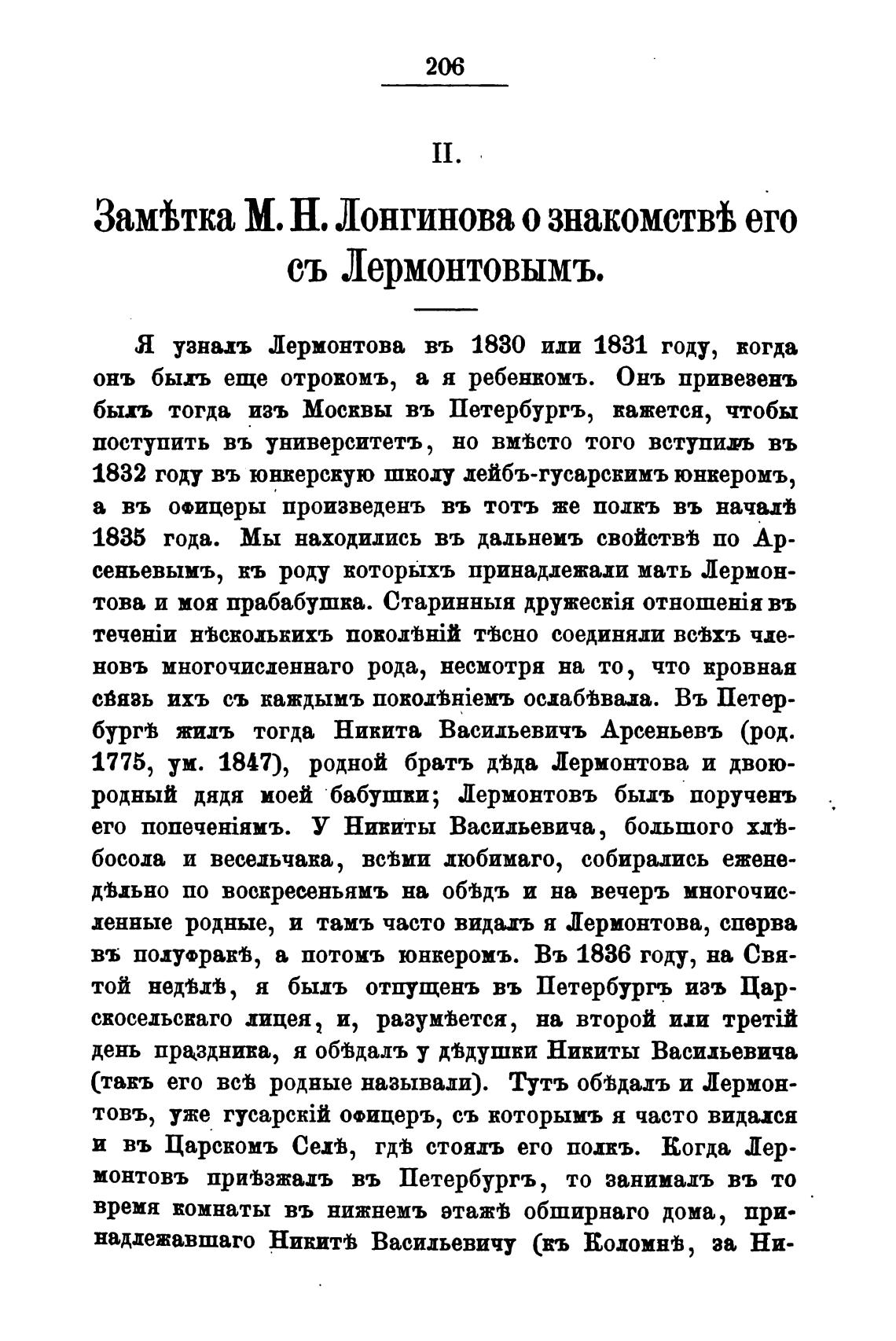 ленные родные, и тамъ часто вида.лъ я Лермонтова, сперва