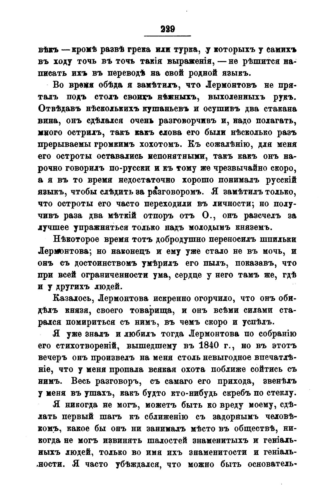 Во время обвда я замвтихъ, что Лермонтовъ не пря-