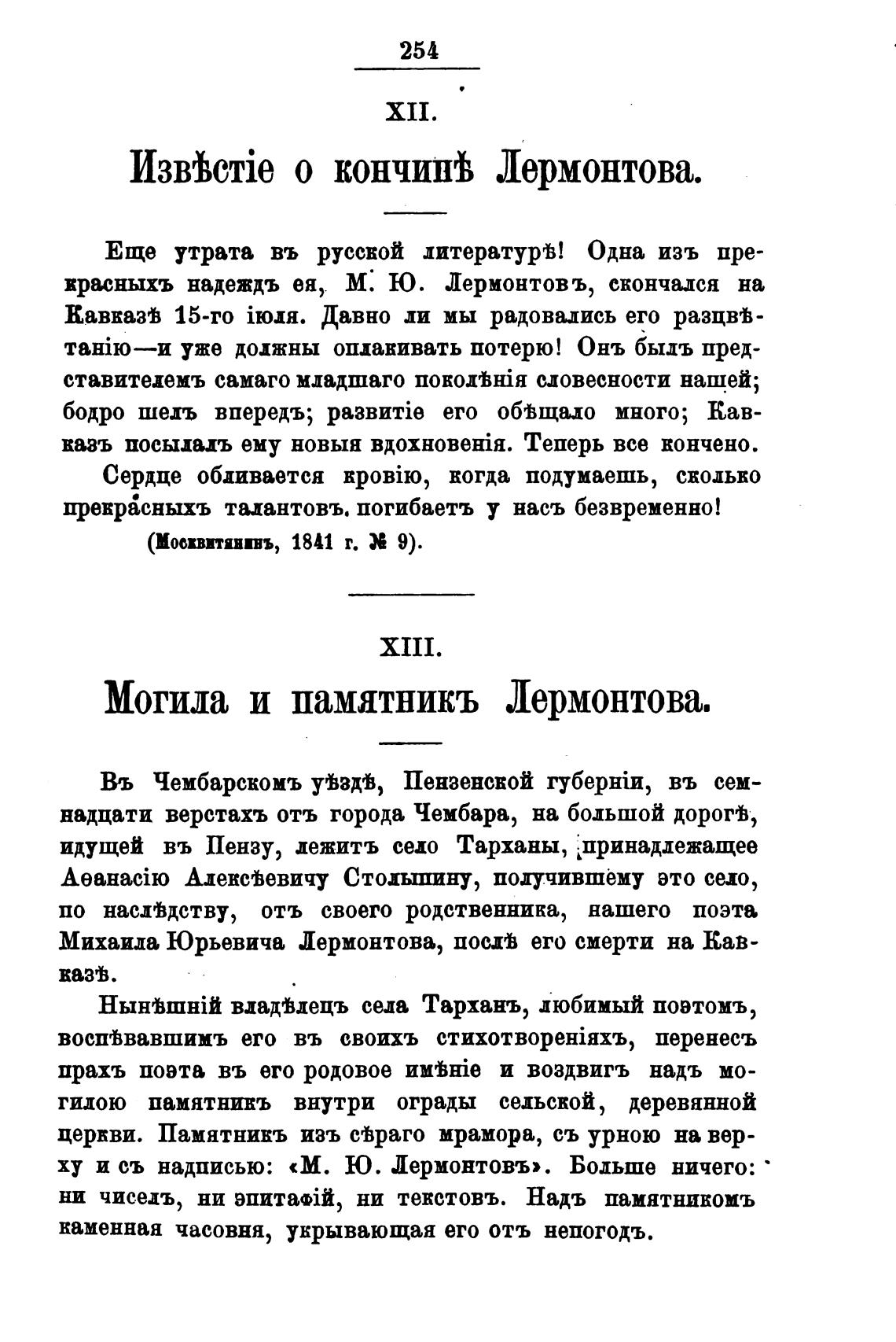 красныхъ надеждъ еж, М: Ю. Лермонтов ъ, скончался на