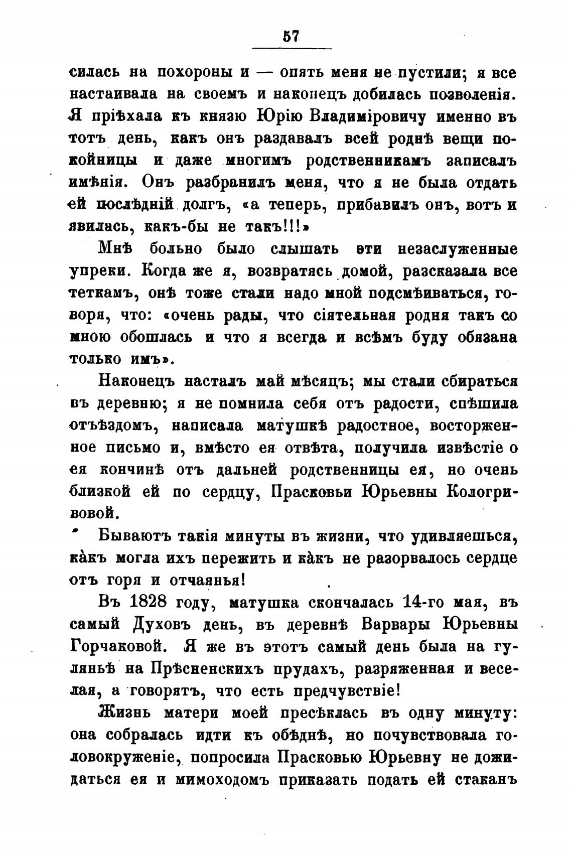 Въ 1828 году, матушка скончалась 14-го мая, въ