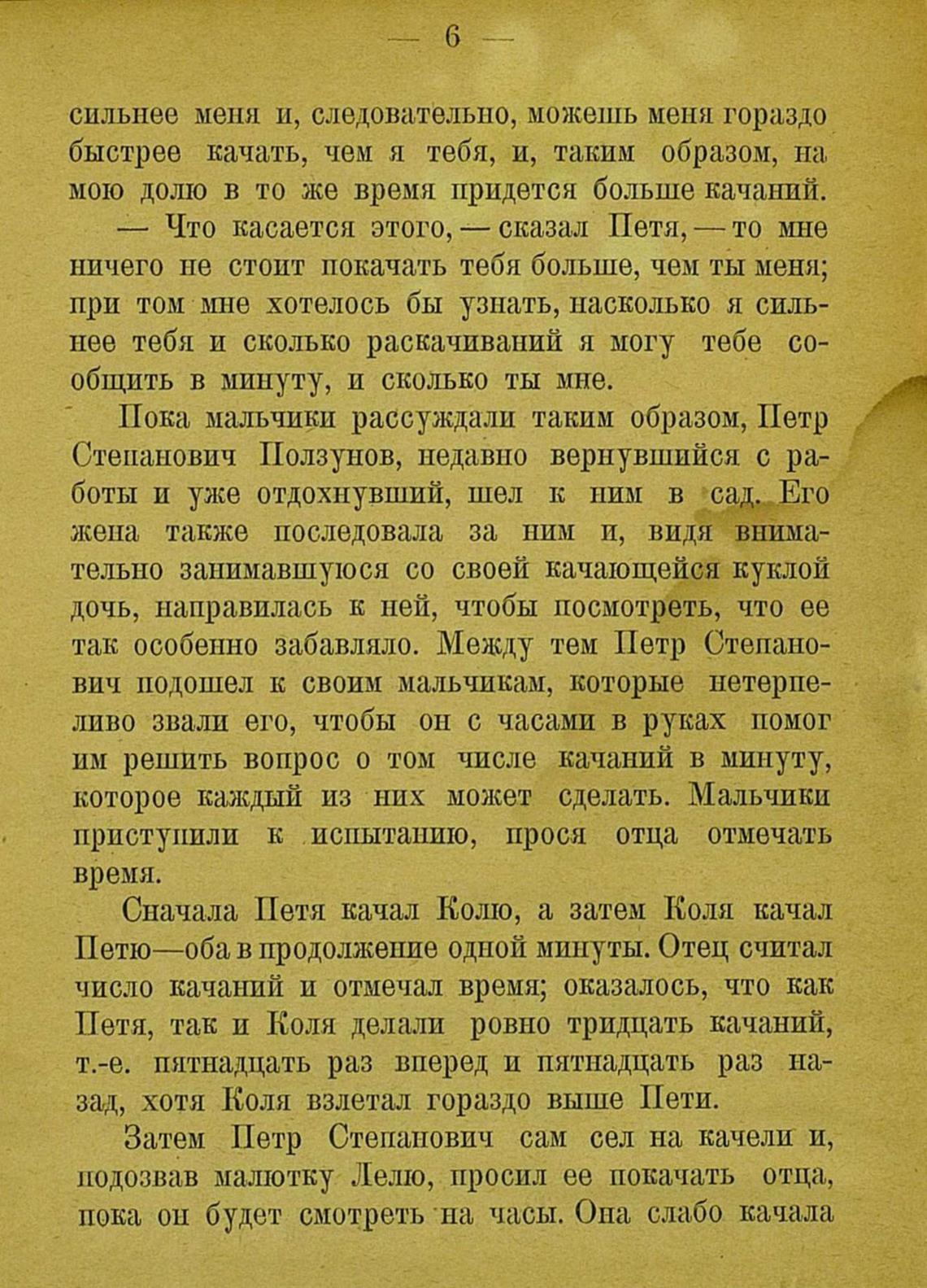 т.-е. пятнадцать раз вперед и пятнадцать раз на зад, хотя Коля взлетал гораздо выше Пети.