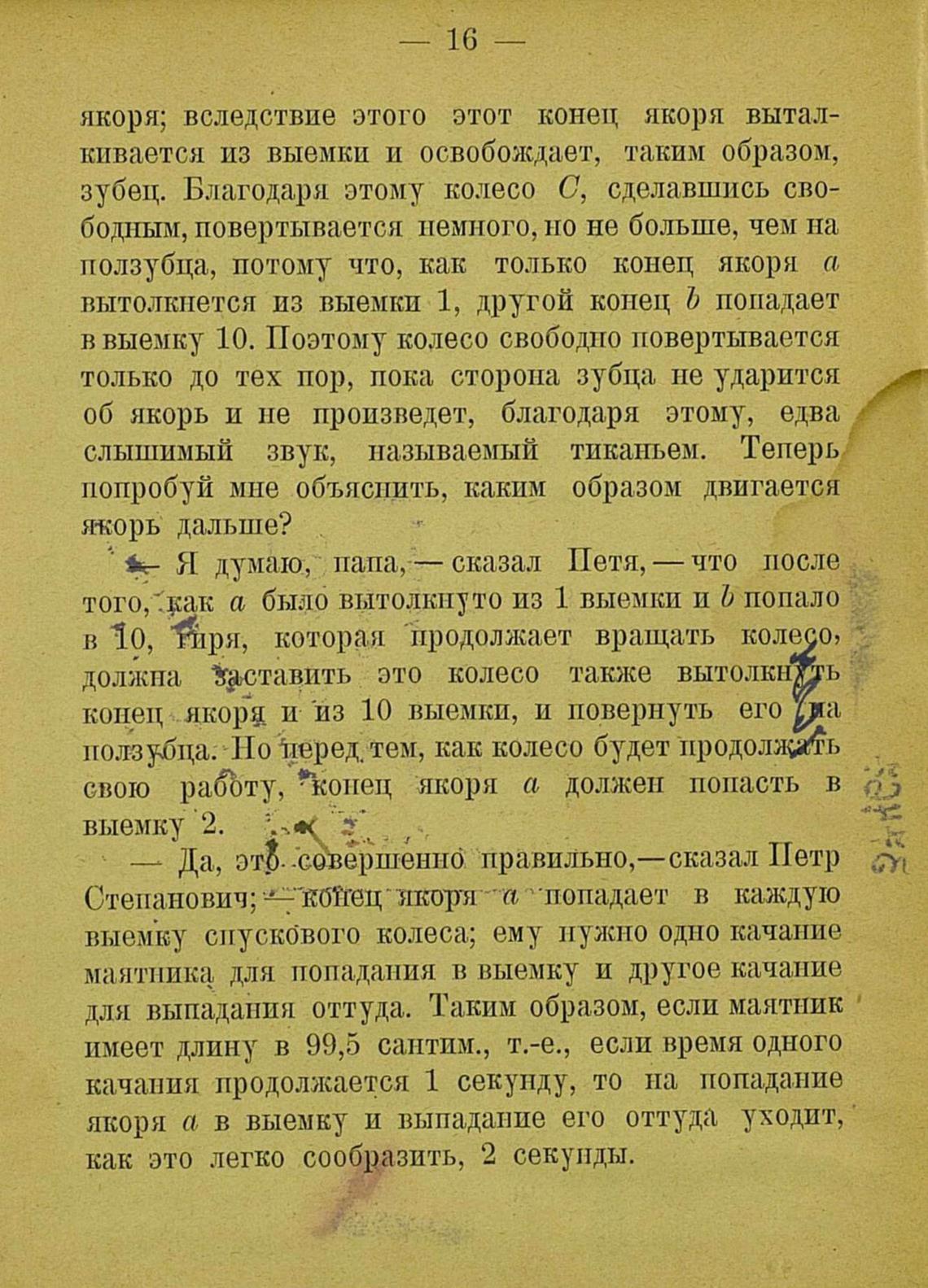 выемку спускового колеса; ему нужно одно качание