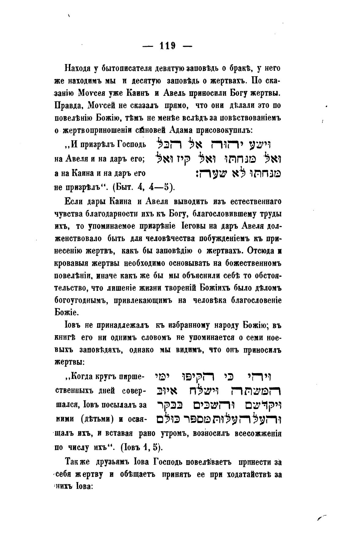 Моусея уже Каинъ и Авель приносили Богу жертвы.
