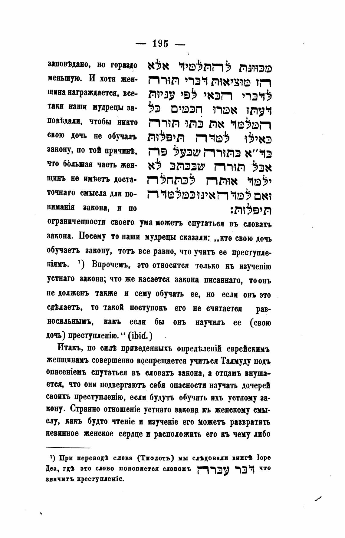 женщинамъ совершенно в@спрещается учиться Талмуду подъ
