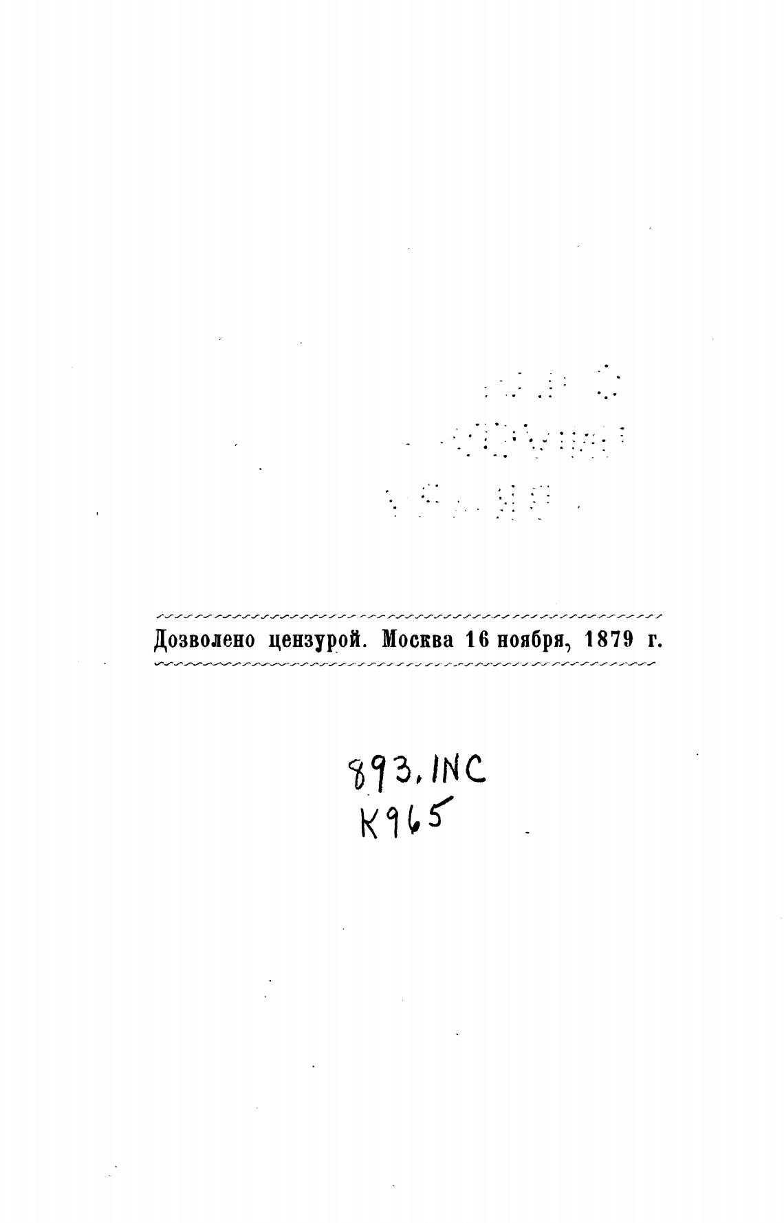 Дозволено цензурой. Москва 16 ноября, 1879 т.