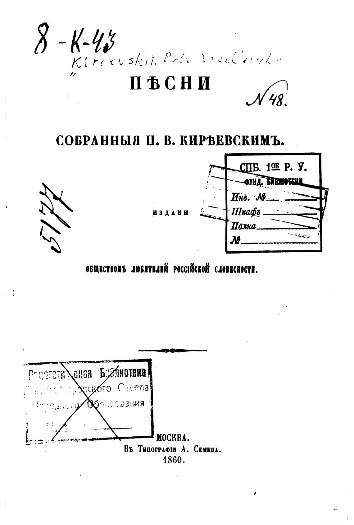 СОБРАННЫЯ П. В. КИРОВСКИМЪ.