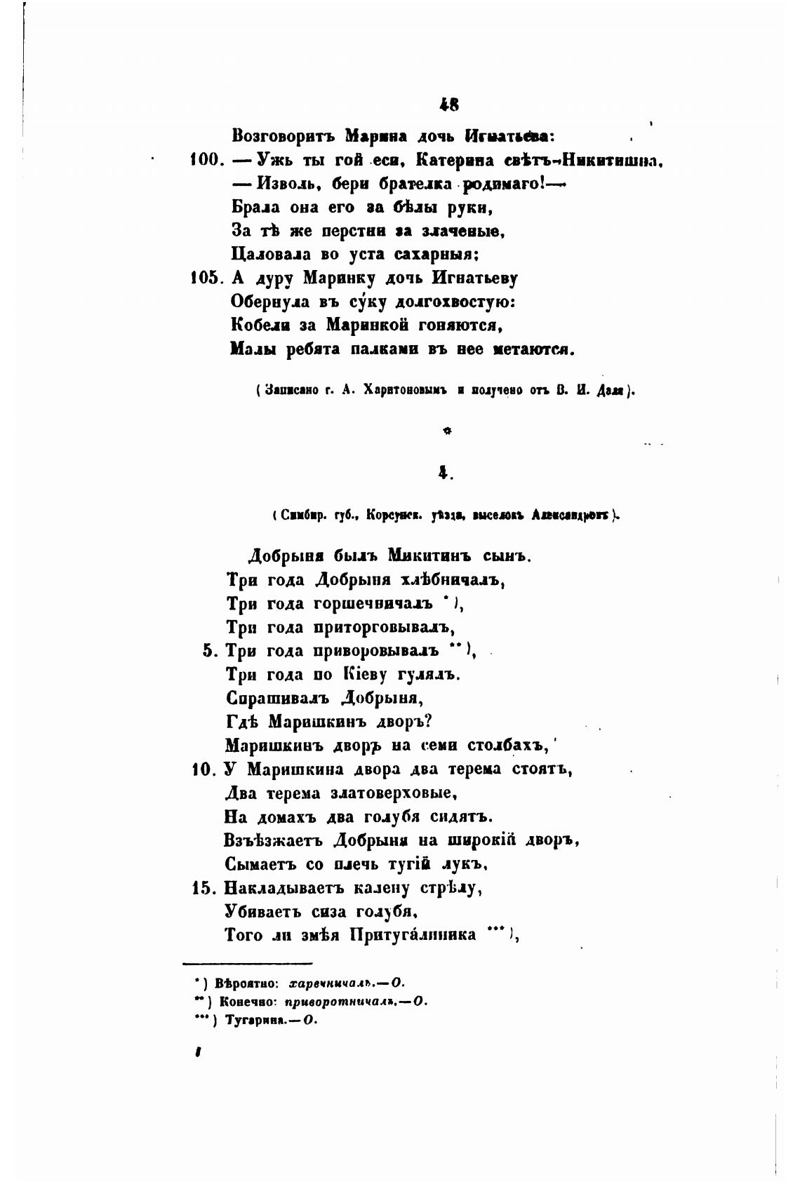 ( Записано г. А. Харвтововымъ и получено отъ В. И. Дви
