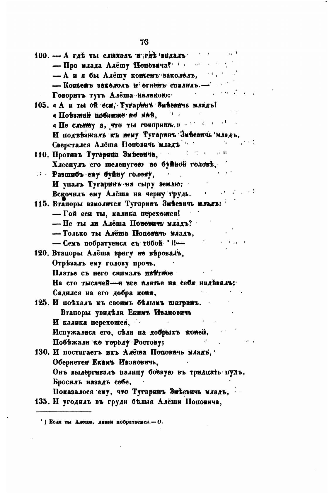 135. И угодихь въ груди б•Ьлыя Алёши Поповича,