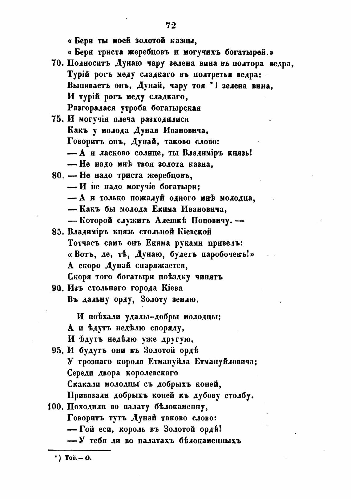 Выпиваетъ онъ, Дунай, чару тоя • ) зелена вина,