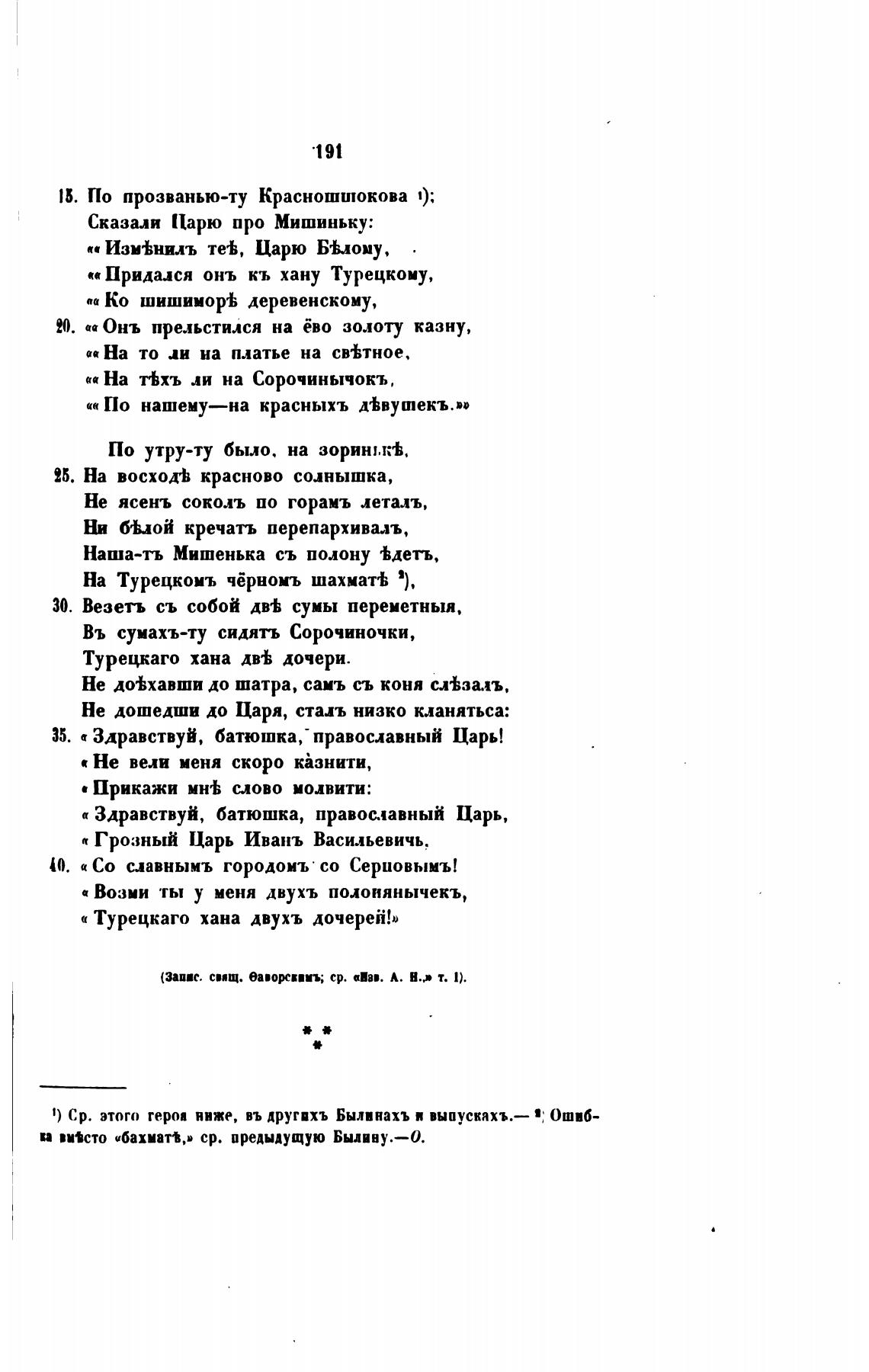 1) Ср. этого героа ниже, въ другихъ Былинахъ и выпускахъ.