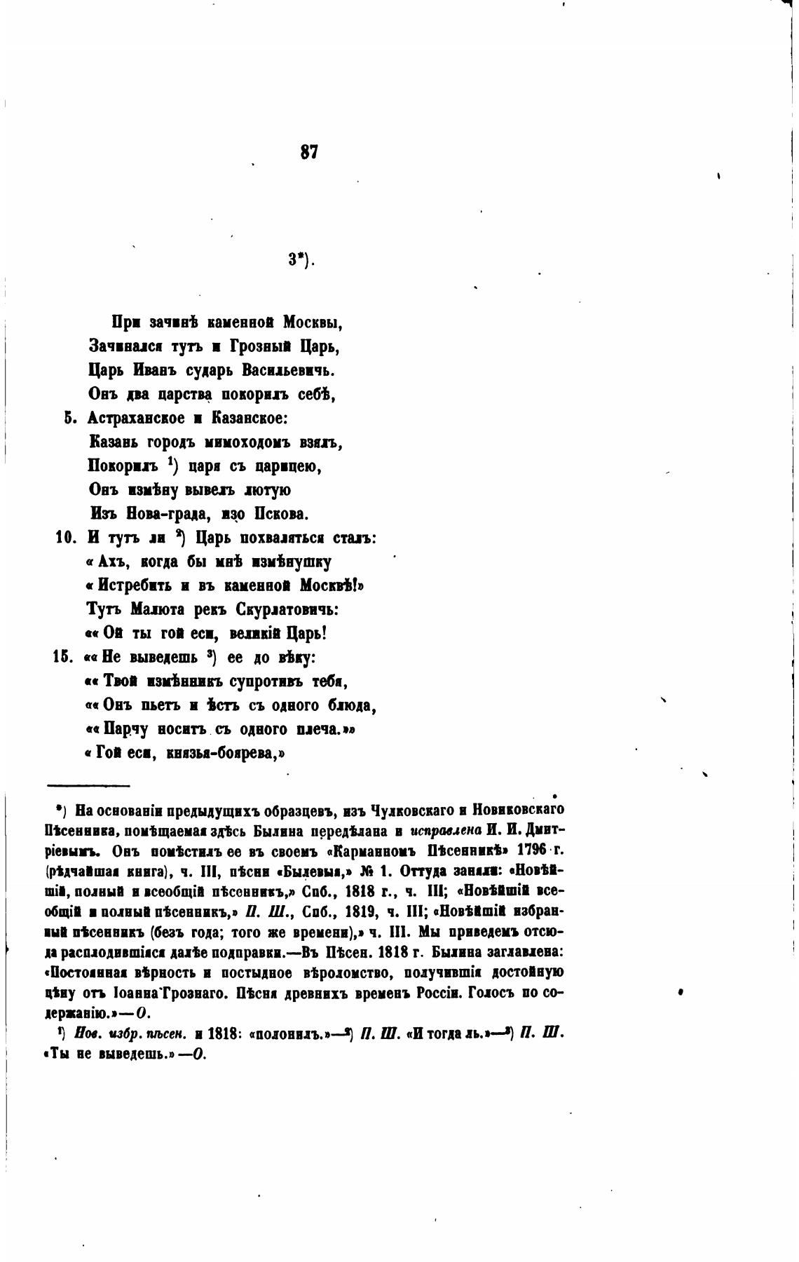 [Псенн•ка, пом•щаеми зд%сь Былина прредшава в исправлена И. И. Дмит-
