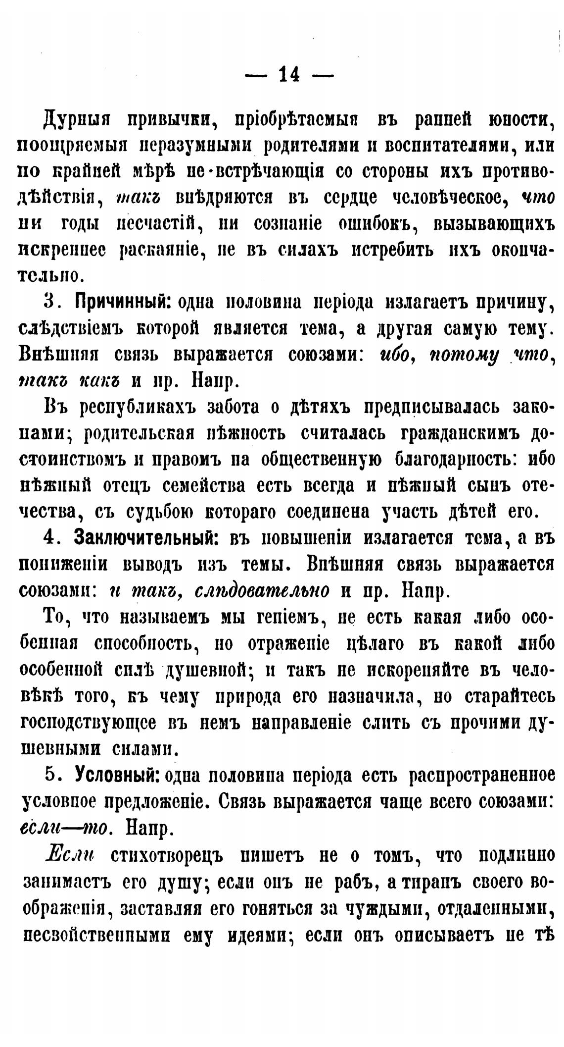З. Причинный: одна половина не[йода излагаетъ причину,