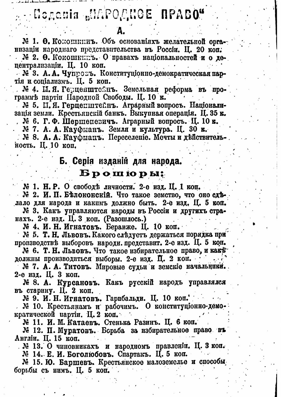 грамм•Ь партЈп Народной Свободы. Ц. 10 Е.
