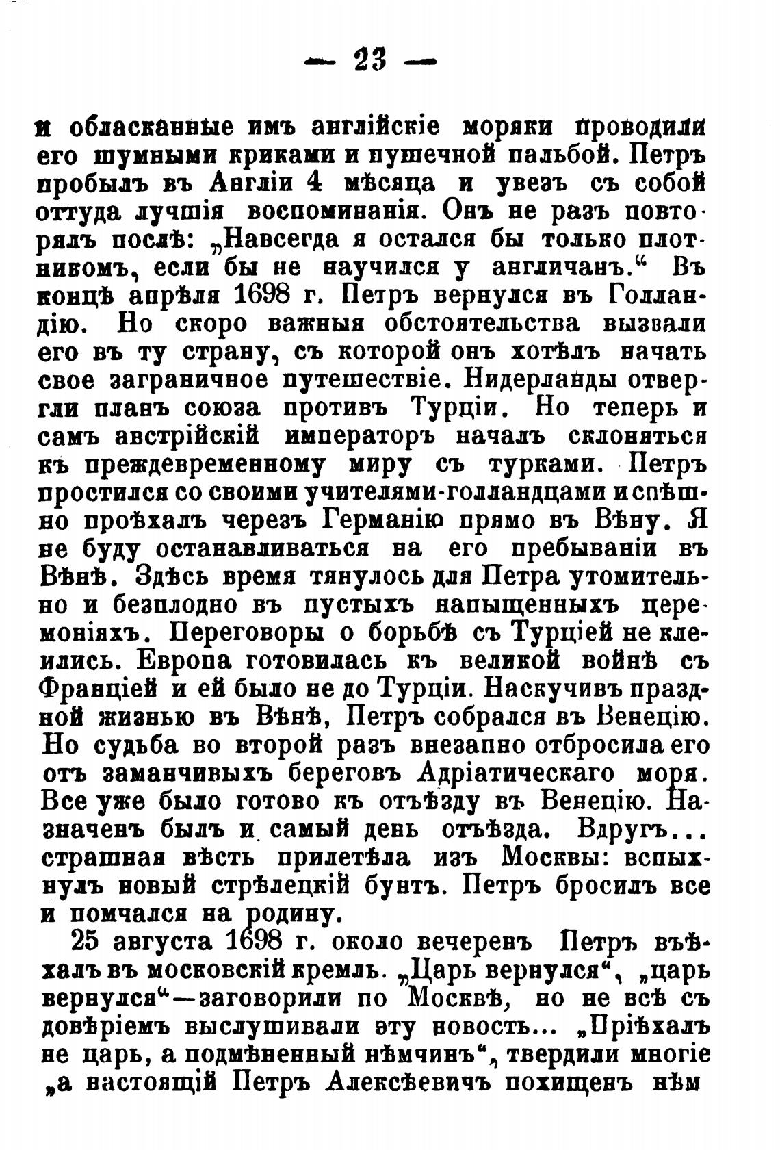 25 августа 1698 г. около вечеревъ Петръ във•
