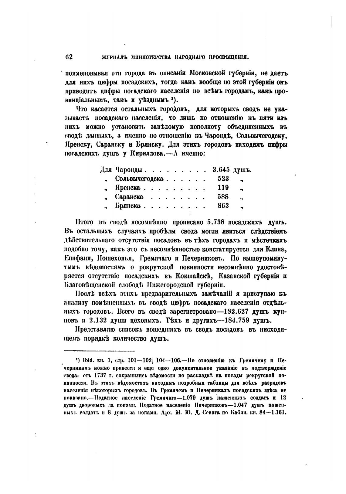 приводить цифры посадскаго по вс%мъ городамъ, какь про-