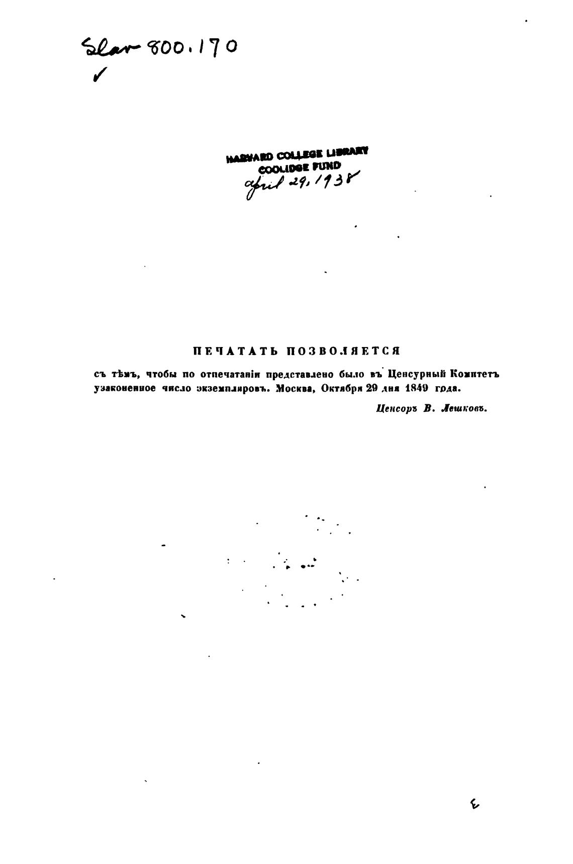 узаконенное число окземплировъ. Москва, Октября 29 дна 1849 года.