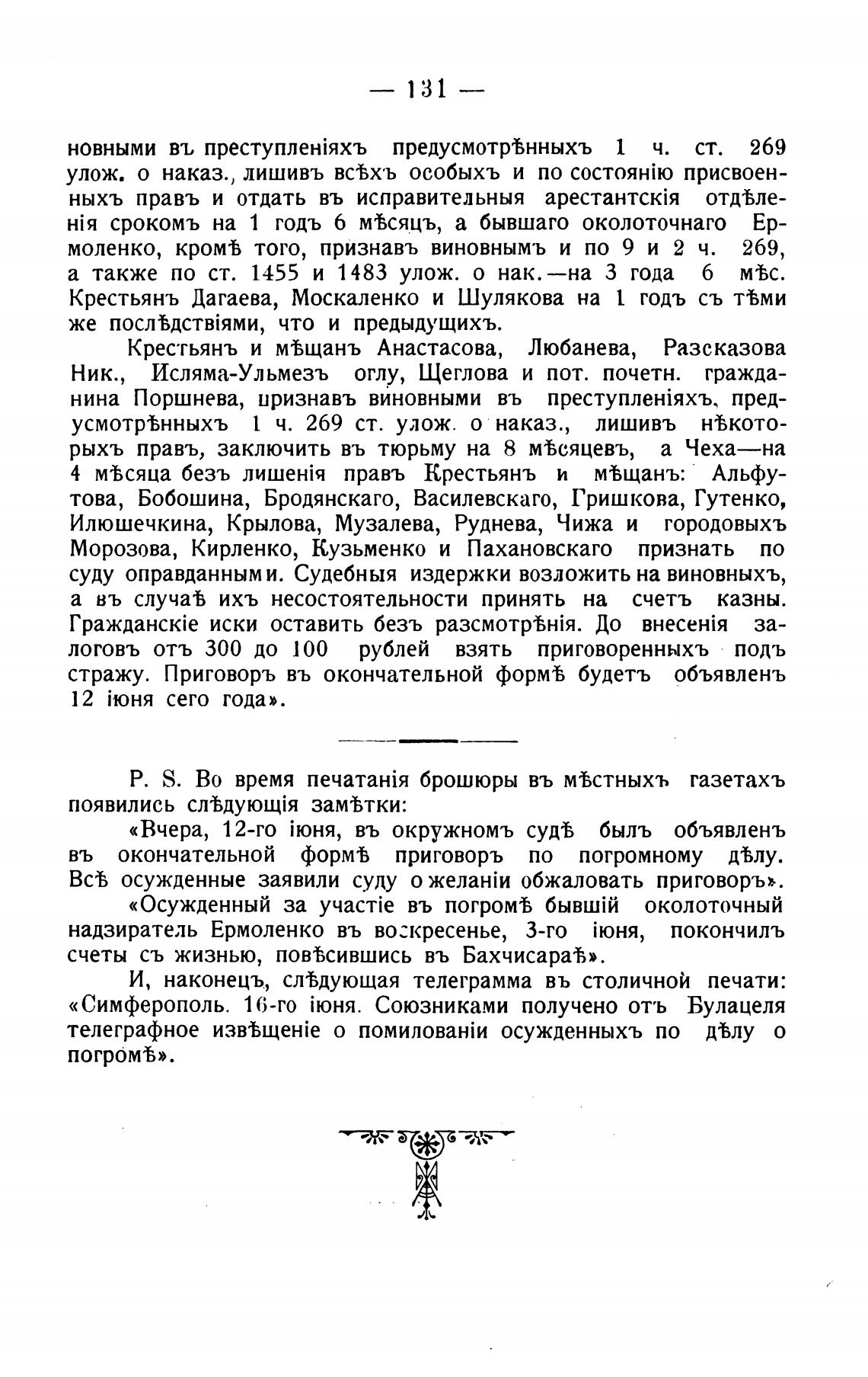 въ окончательной форм% приговоръ по погромному д%лу.